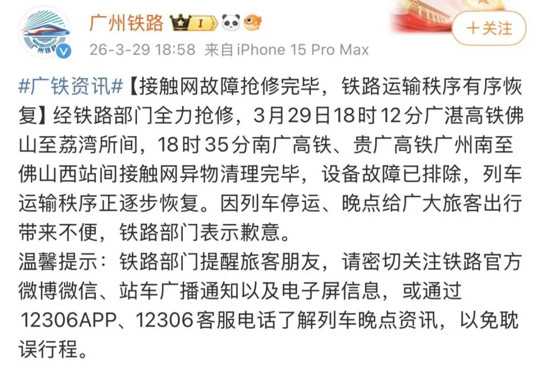 铁路发生故障停摆,确实是难以避免的小概率事件。中国高铁的安全性和稳定性全球领先,每百万公里故障率显著低于国际通行标准,但发生事故后的处理,似乎还有进一步改善的空间。