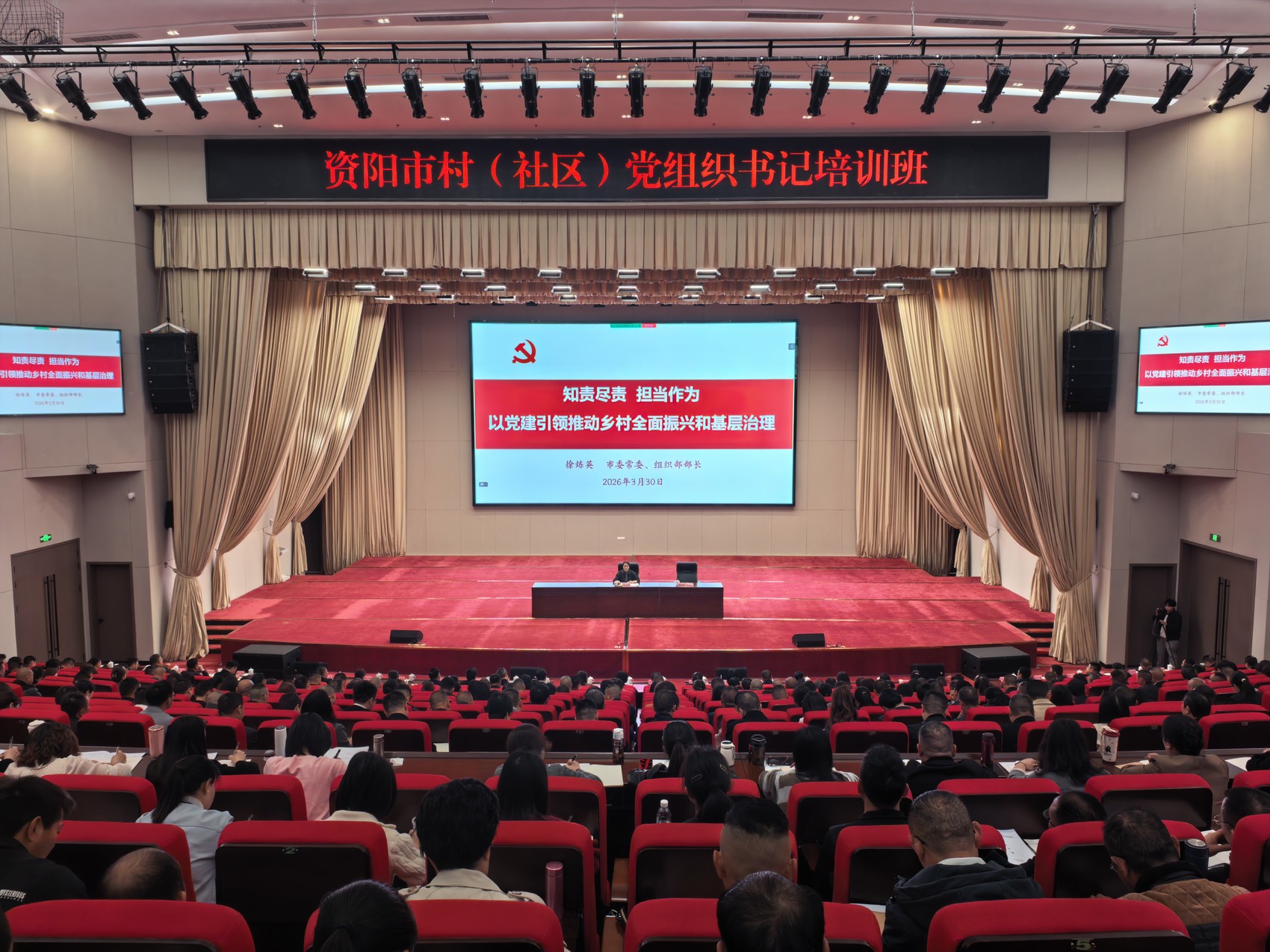 3月30日上午,资阳市村(社区)党组织书记培训班在资阳市委党校正式开班。会场内,一场聚焦党建引领推动乡村全面振兴和基层治理的专题辅导拉开帷幕;会场外,特色农产品展区里,清水芍尖、老君菜心、中天榨菜、报花厅大米等来自各乡镇的农产品依次排开,柠檬果汁、桑葚酒、蛋白饮品等精深加工产品整齐陈列,展示着资阳乡村振兴的成果。
