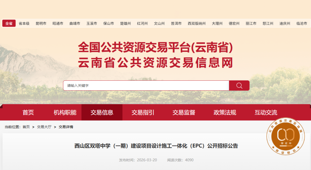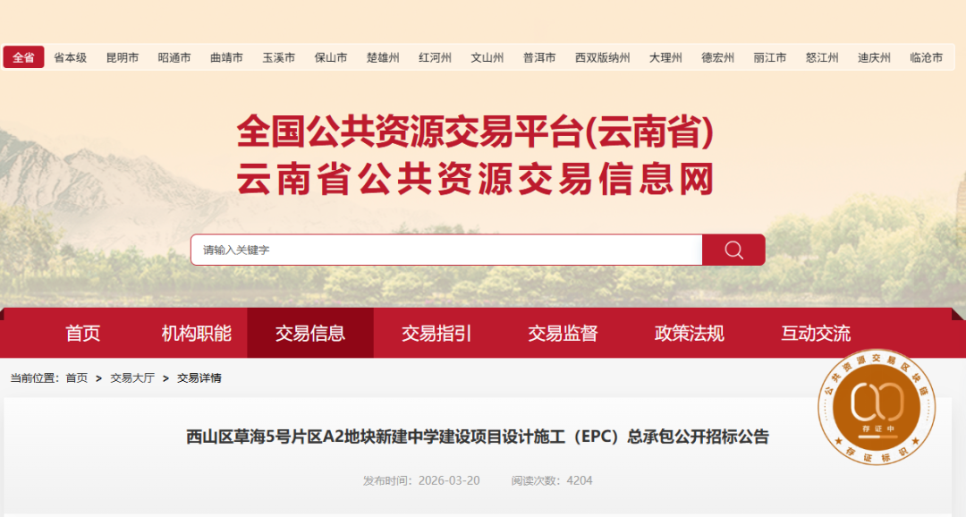 记者从云南省公共资源交易信息网站获悉