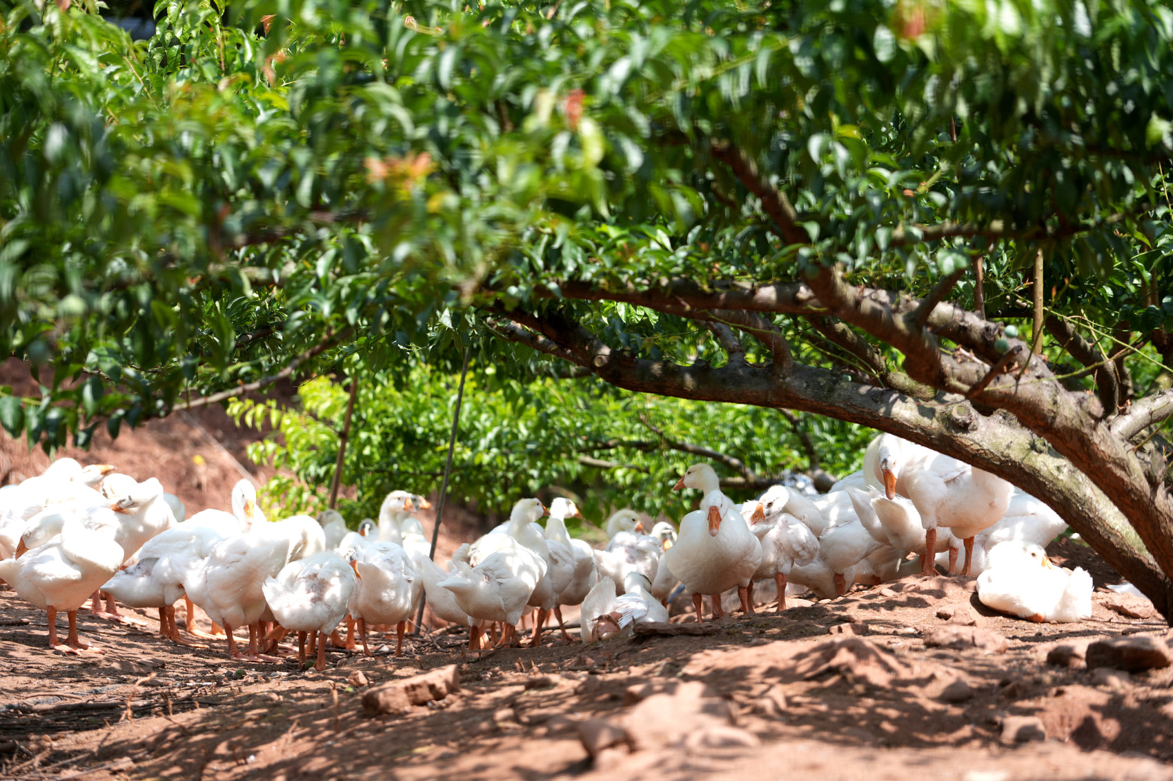 如今,白鹅进入果园,成了最勤劳的“除草工”。增加了运动量的白鹅,肉质也变得更加紧实。