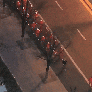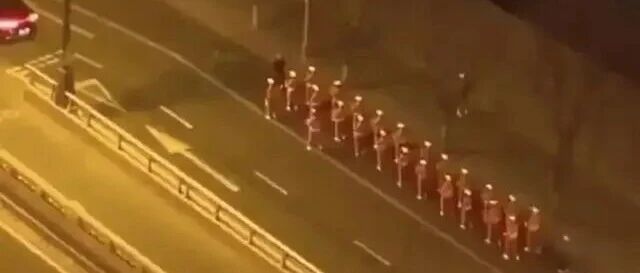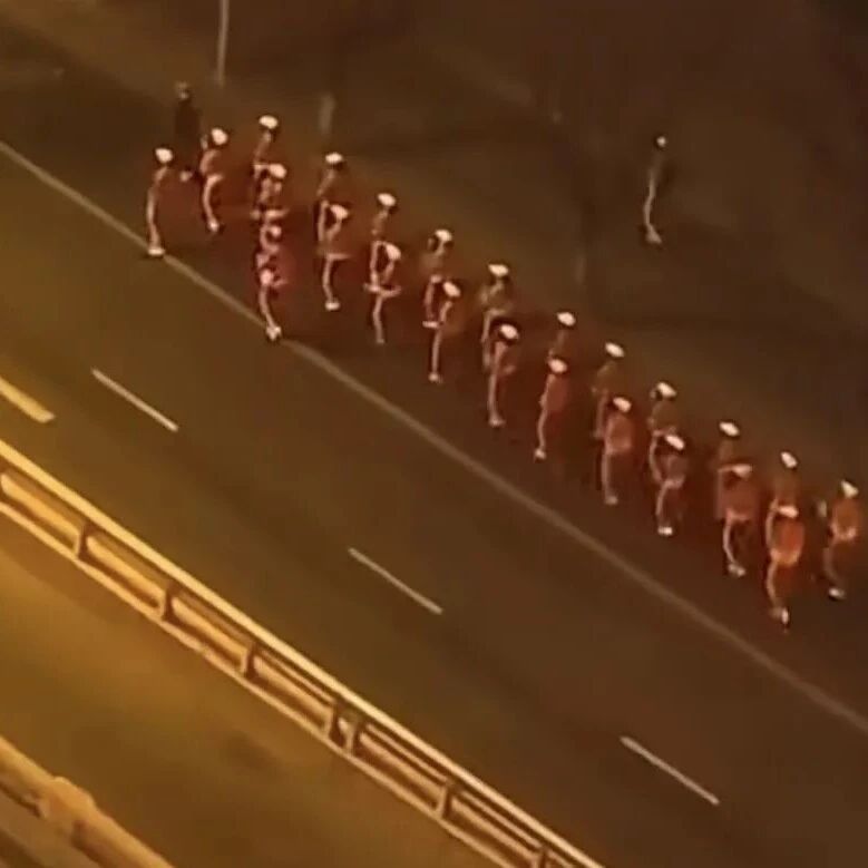 现场视频显示,天色未亮,一群身穿橙红色统一服装的人在公路非机动车道列队前行,共20余人。记者核实到,视频中“暴走团”的活动地点为太原市杏花岭区五一路与北中环街交叉口南侧。