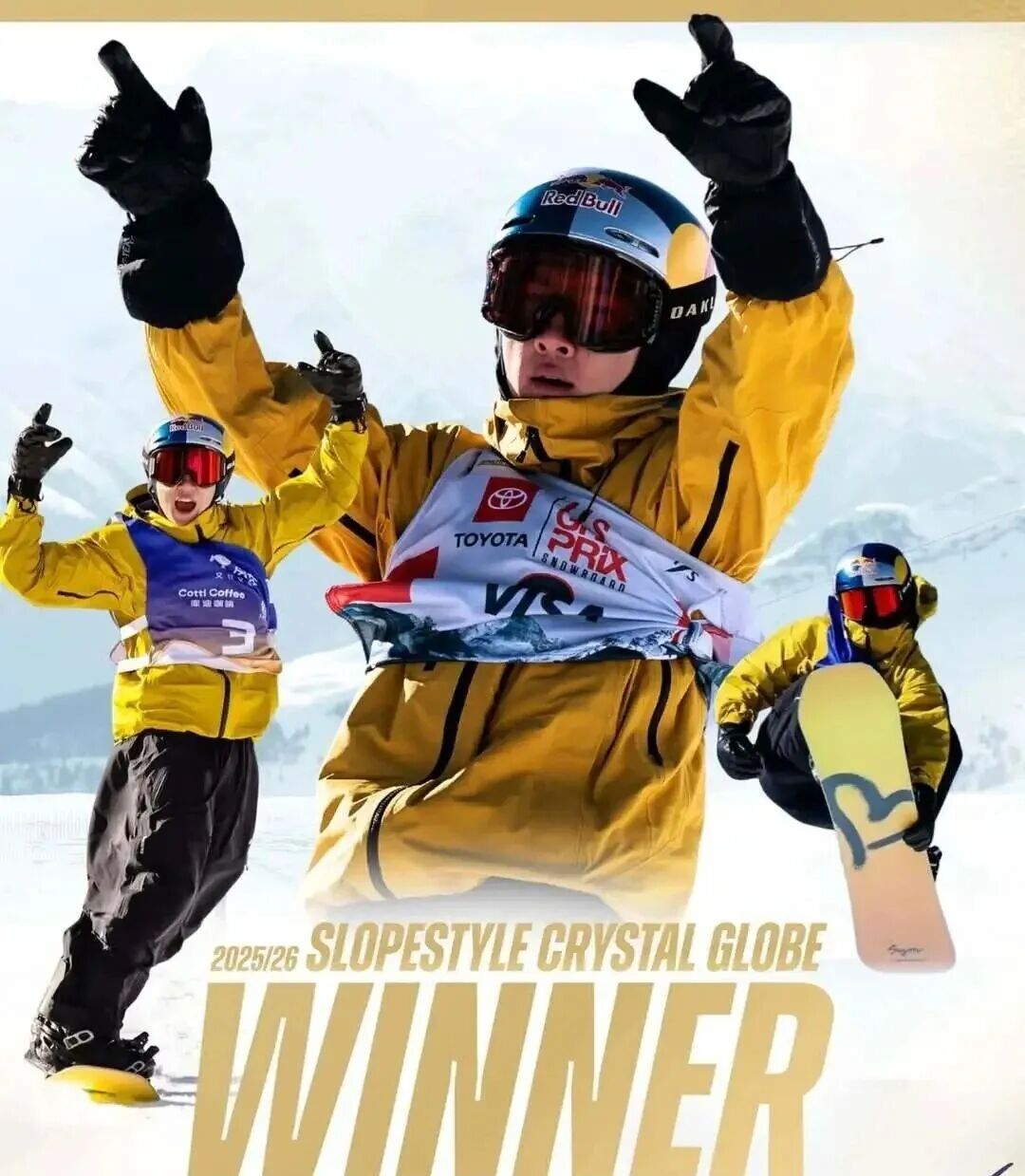 3月28日,国际雪联宣布冬奥会冠军、山西选手苏翊鸣获得2025-2026赛季国际雪联单板滑雪男子坡面障碍技巧世界杯赛季总冠军。此前,苏翊鸣已摘得本赛季大跳台世界杯总冠军。