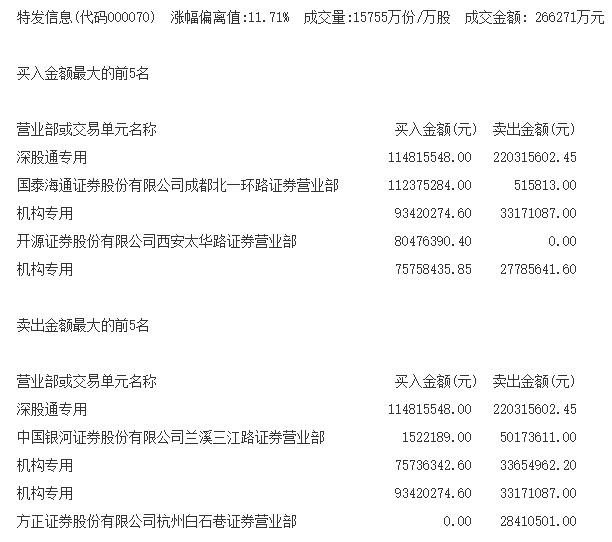 特发信息交易公开信息
