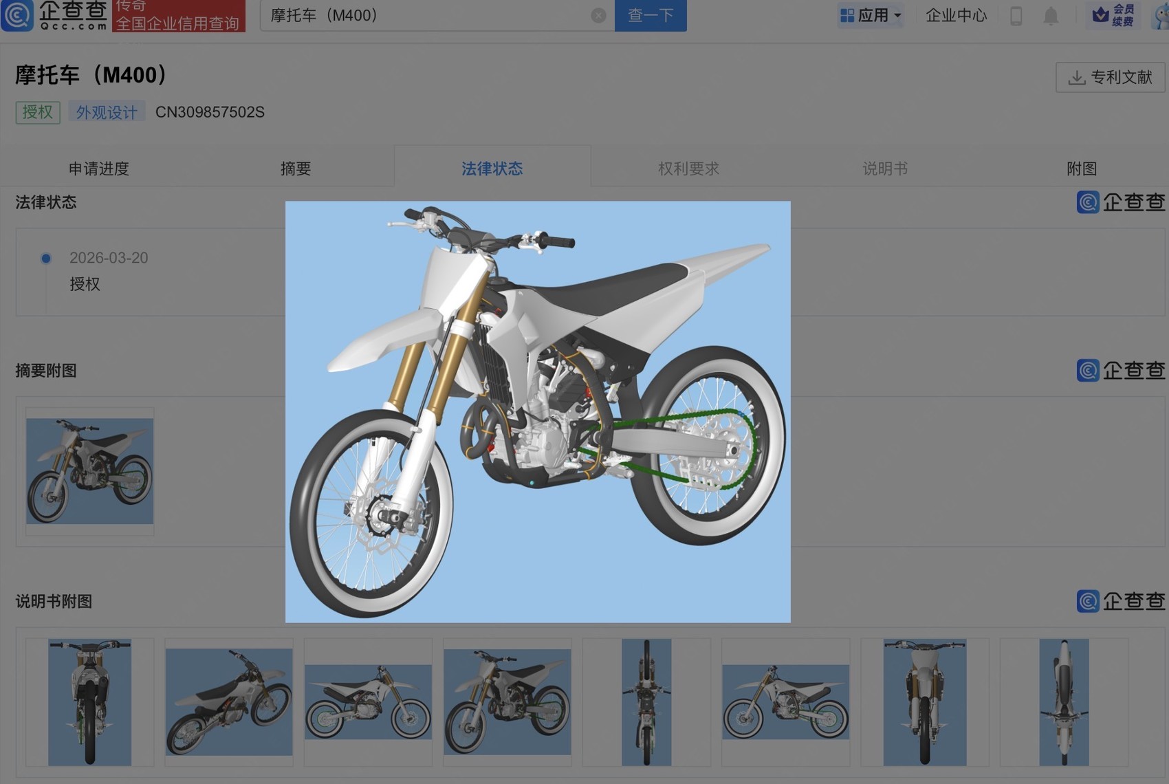 金融投资报记者注意到,近期,该公司多个摩托车外观设计专利获授权——820RR、M400、Q700等型号赫然在列,申请时间集中于2025年7月至8月。专利的密集落地,暗示着产品矩阵已然成型。