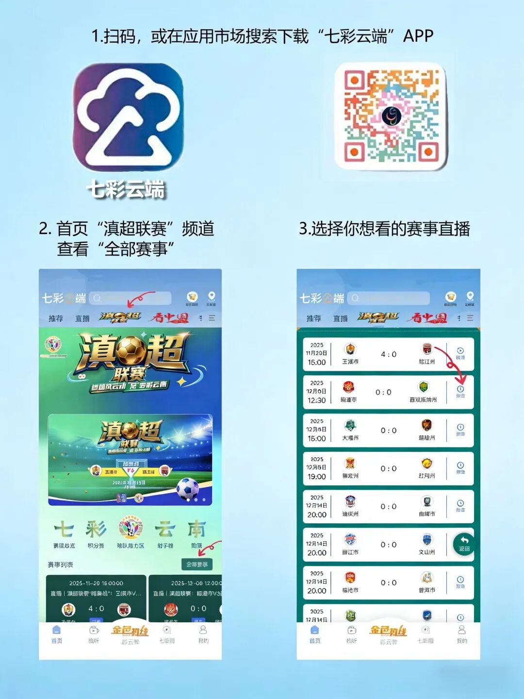 5、发布后务必前往七彩云端APP—滇超联赛频道—短视频大赛完成报名,提交作品信息,否则无法计入参赛记录