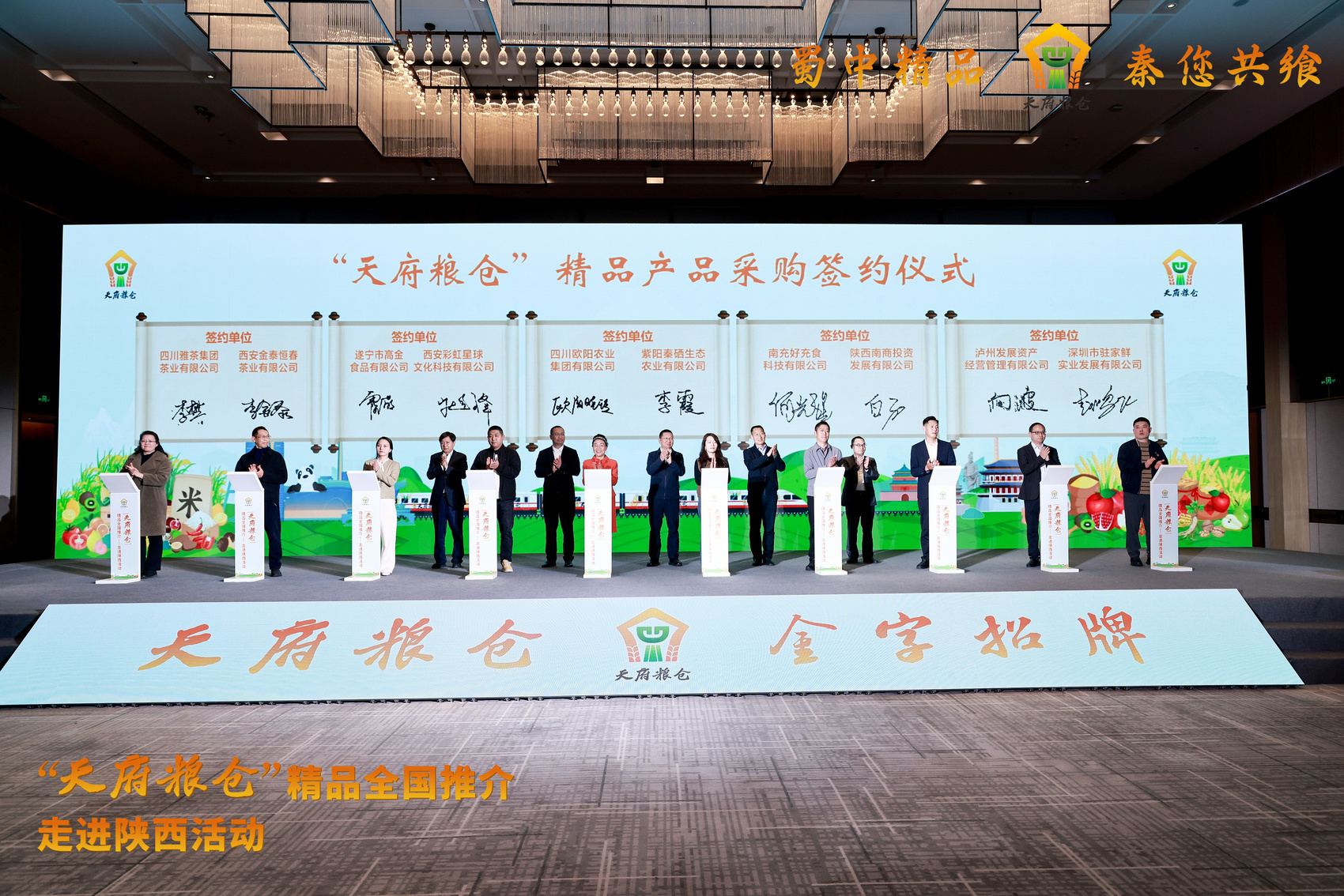 南充市、遂宁市、泸州市、阿坝州、雅安市雨城区、眉山市丹棱县、达州市等地的代表依次上台推介当地的特色农产品,雅茶集团、欧阳农业集团等5家川企与采购方现场签订战略合作协议。据统计,活动期间,川陕两地意向签约金额共计1.3亿余元,为共同构建产销对接长效机制奠定了坚实基础。