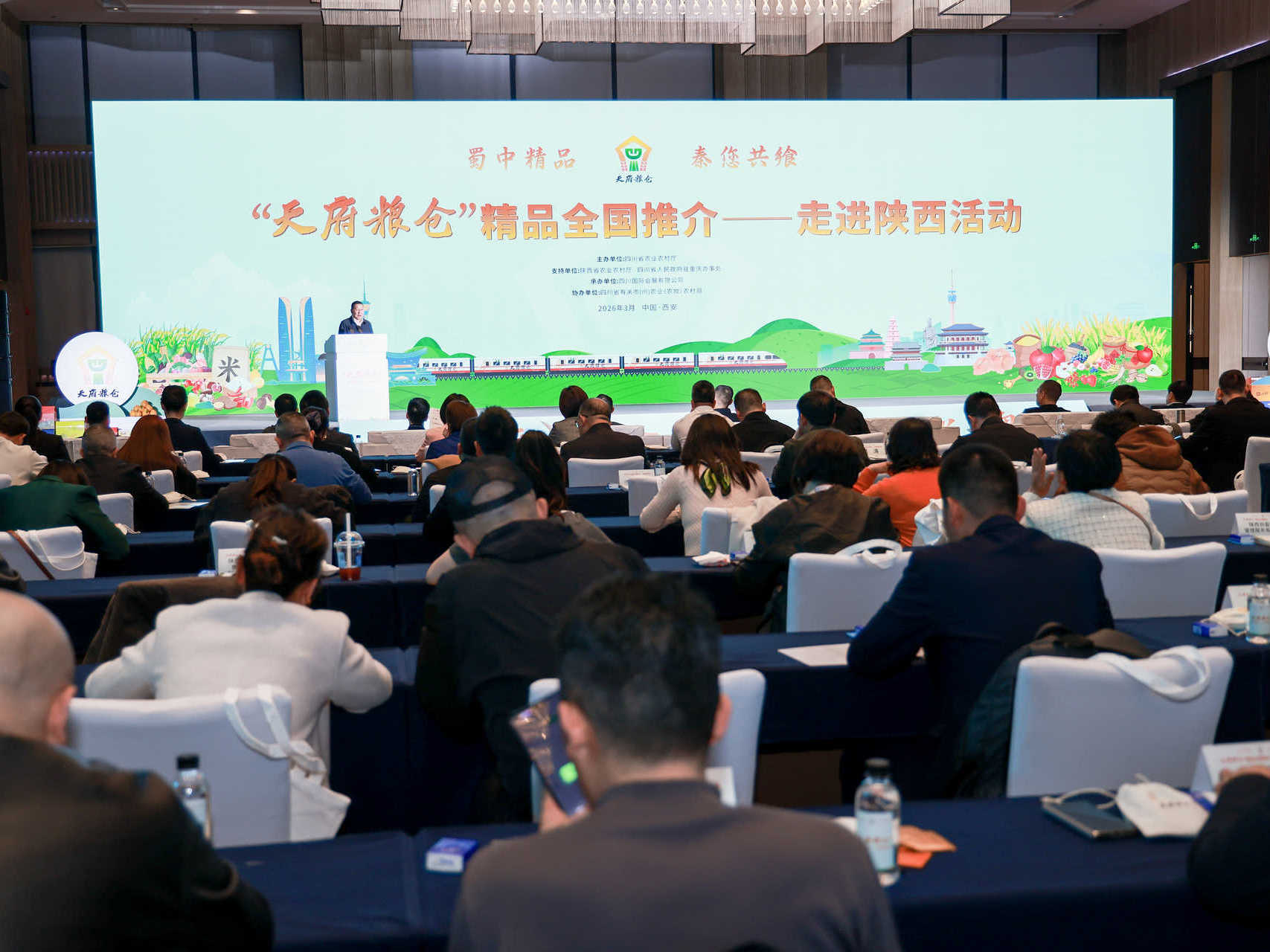 当天下午2时30分,推介活动正式启动。四川省农业农村厅总畜牧师李春华出席活动并致辞,他以“三个好”生动概括了“天府粮仓”精品的独特优势——源自得天独厚的“好环境”、拥有卓越不凡的“好品质”、成就享誉中外的“好品牌”。他表示,川陕两地“同饮一江水、同承一脉情”,本次活动既是“卖川货”,更是“促合作”,希望让更多“天府粮仓”精品端上三秦人民的餐桌。
