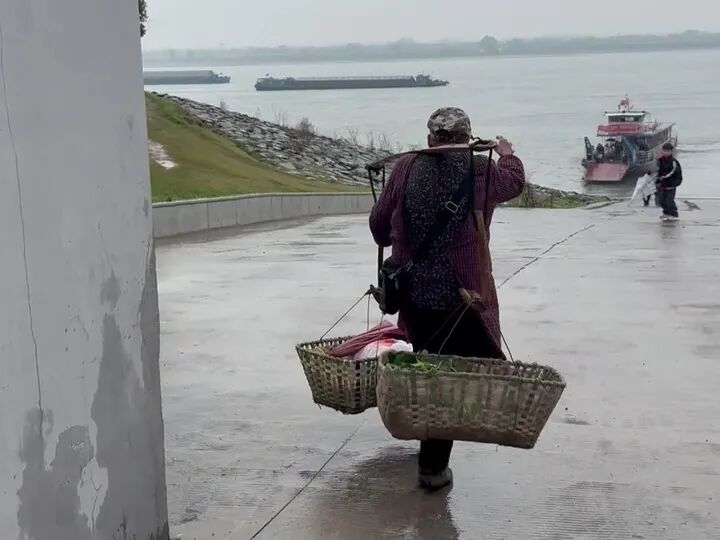 一位乘客迎上去接过了扁担