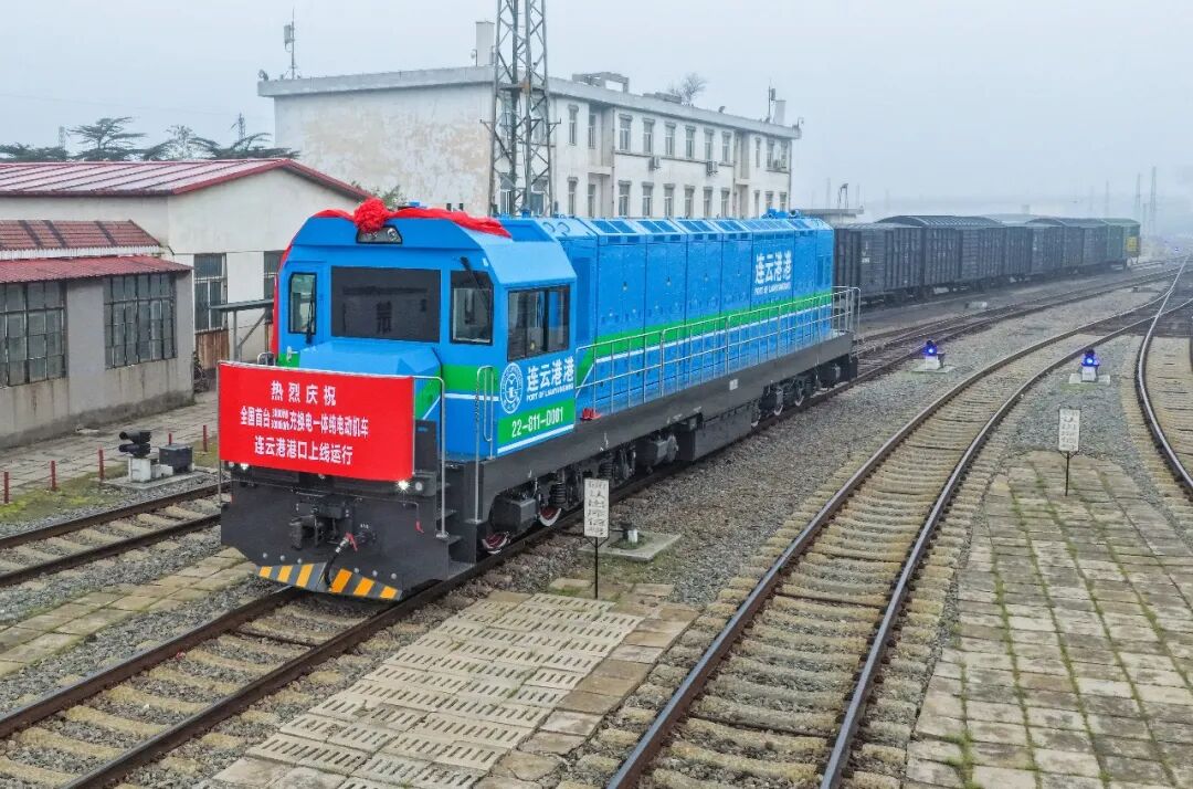 3月30日上午11时,伴随着嘹亮的鸣笛声,全国首台3000kW充换电一体纯电动机车缓缓驶入连云港港口铁路编组场,正式投入运行。这是连云港港加快智慧绿色港口建设取得的又一重大突破,也标志着连云港港口铁路运输装备进入“大功率、低能耗、零排放”的崭新发展阶段。