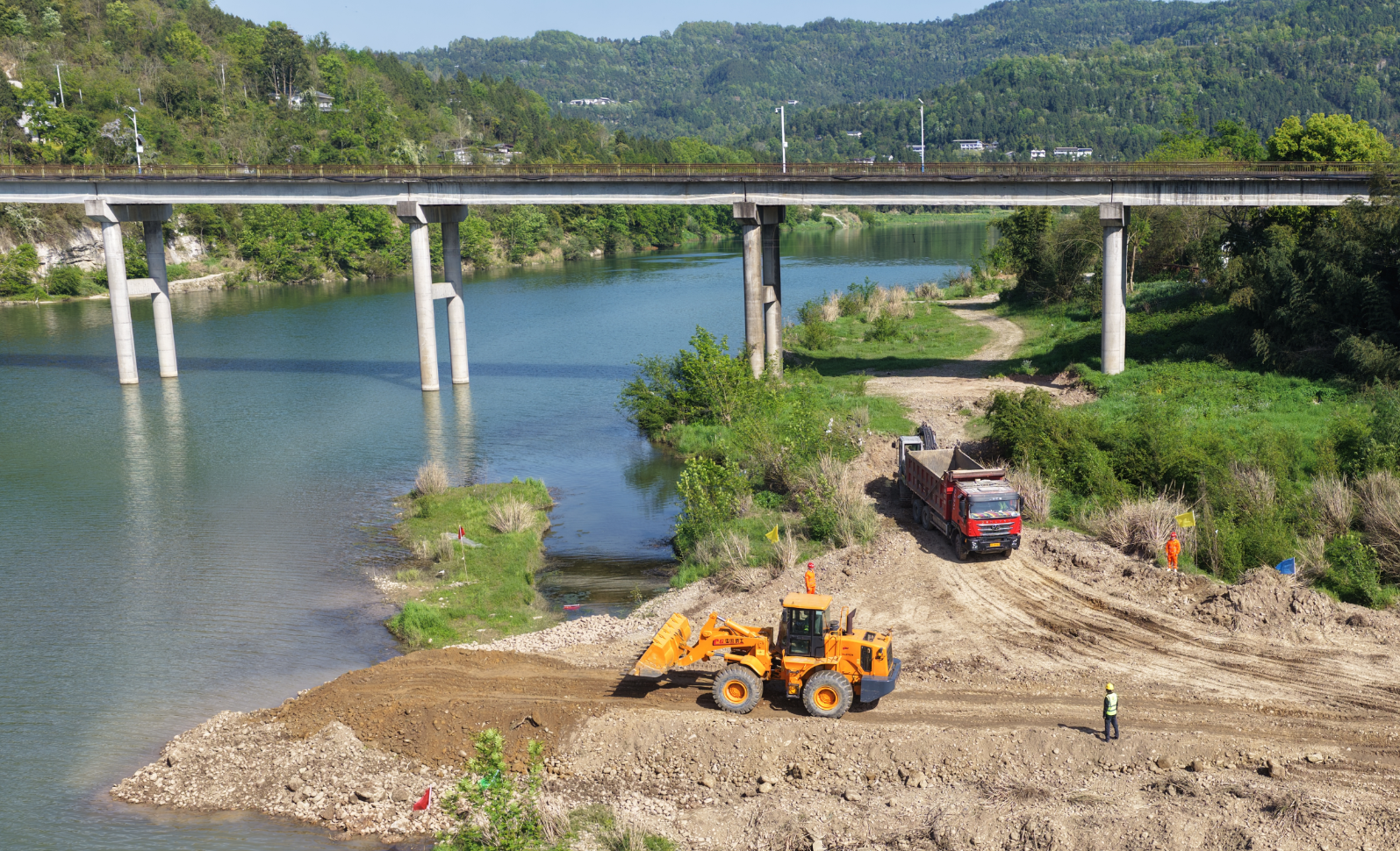 先期开工点东河特大桥施工现场。