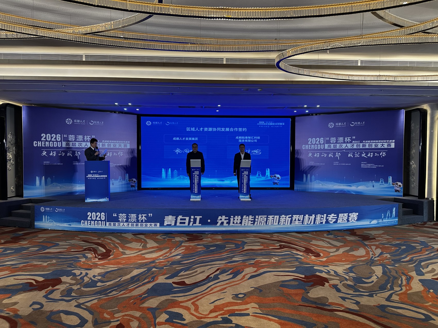 活动中,成都人才发展集团与成都陆港智汇科技服务有限公司就人才资源协同发展签署合作协议,双方将围绕人才引育、项目孵化、资源对接、服务保障等方面深化合作,为人才发展提供优质、高效的支撑保障。