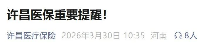 3月30日,许昌市医疗生育保险中心微信公众号发布重要提醒,具体内容如下: