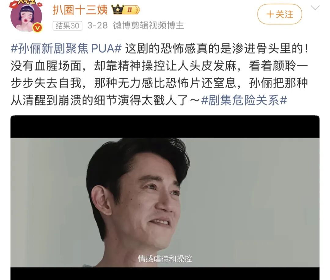 “这段戏如果让女孩子看到可以规避掉很多PUA,可以让女孩子有警惕性,让女性脱离苦海。”