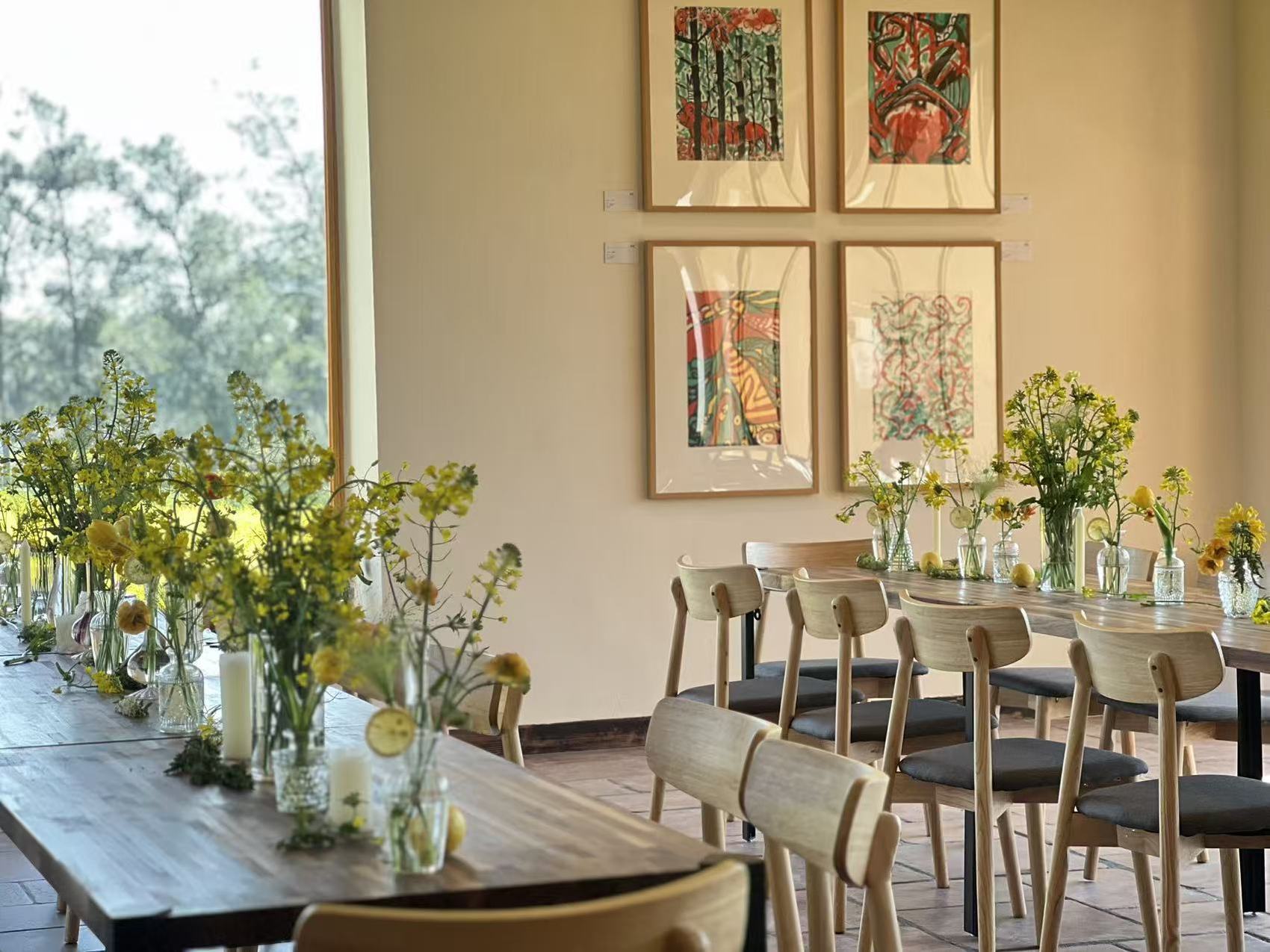 以油菜花为主题设计的餐桌美陈。受访者供图