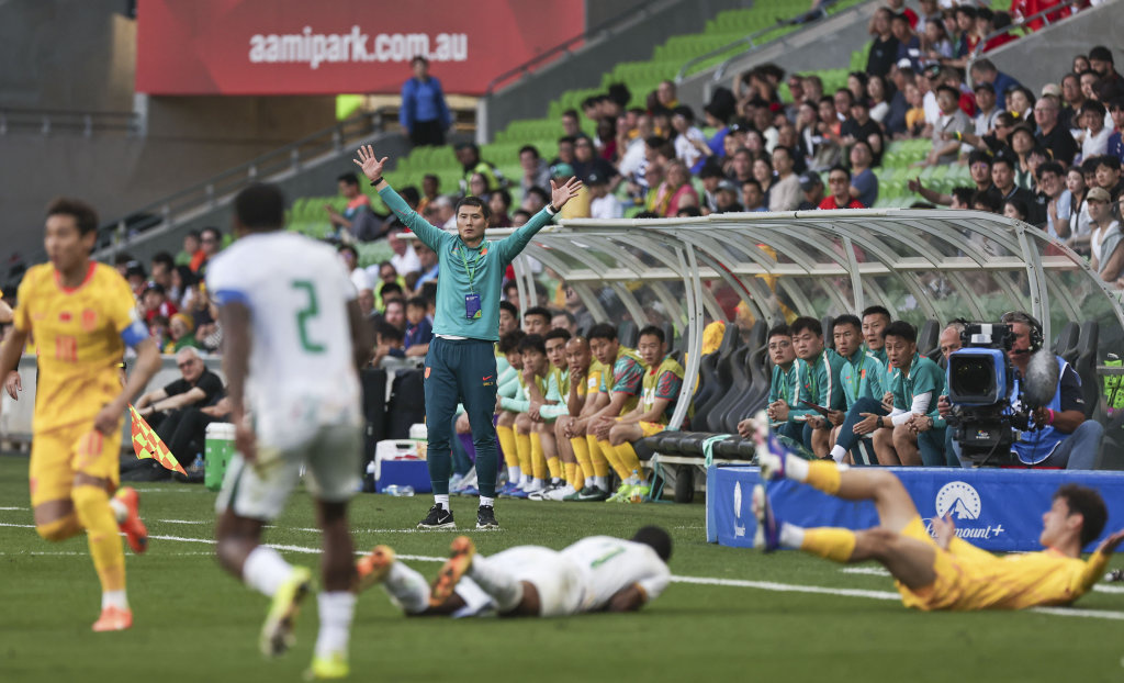 3月31日,中国队主教练邵佳一在场边指挥。