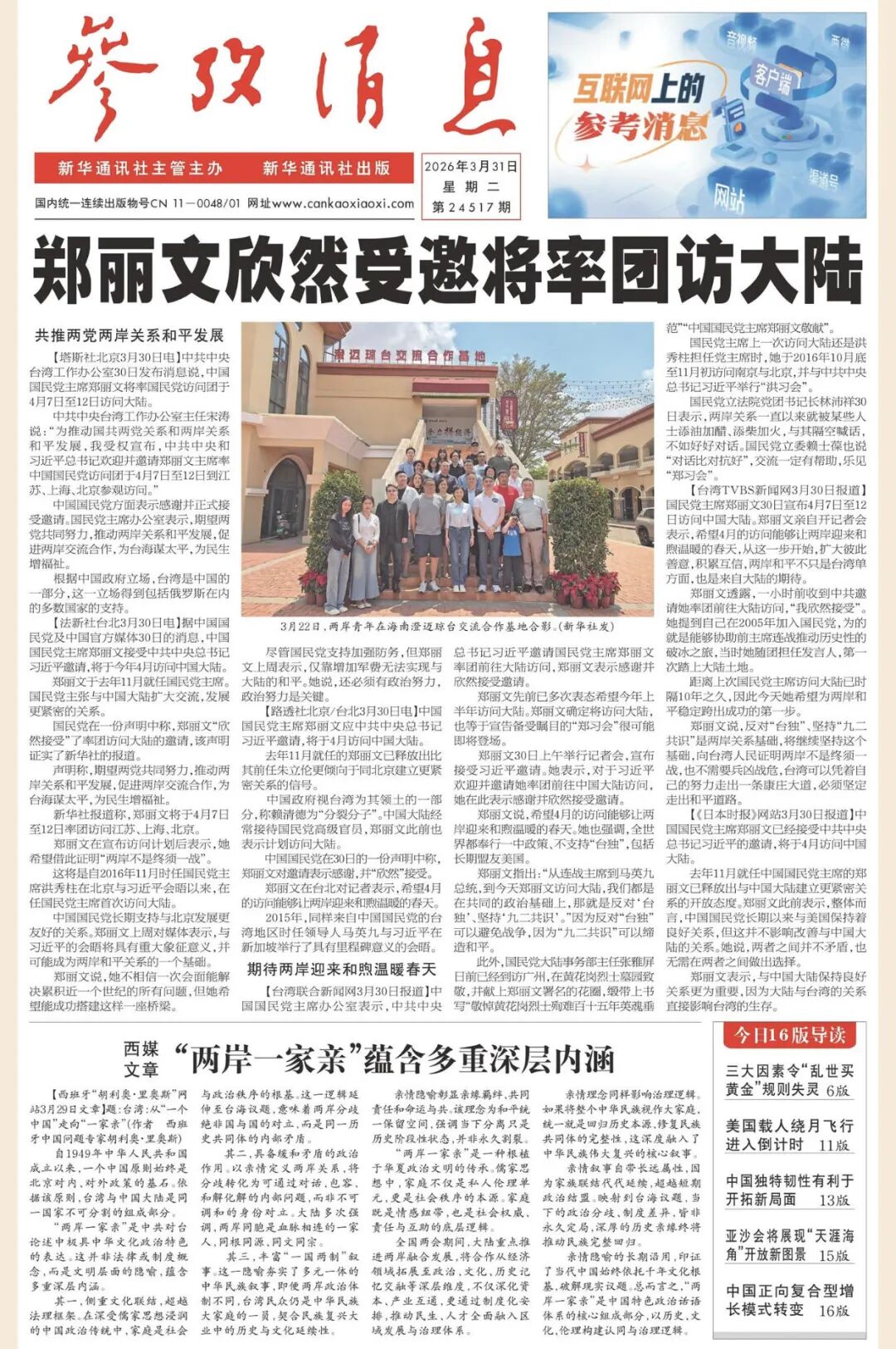今日出版的《参考消息》数字报,五大看点不容错过。