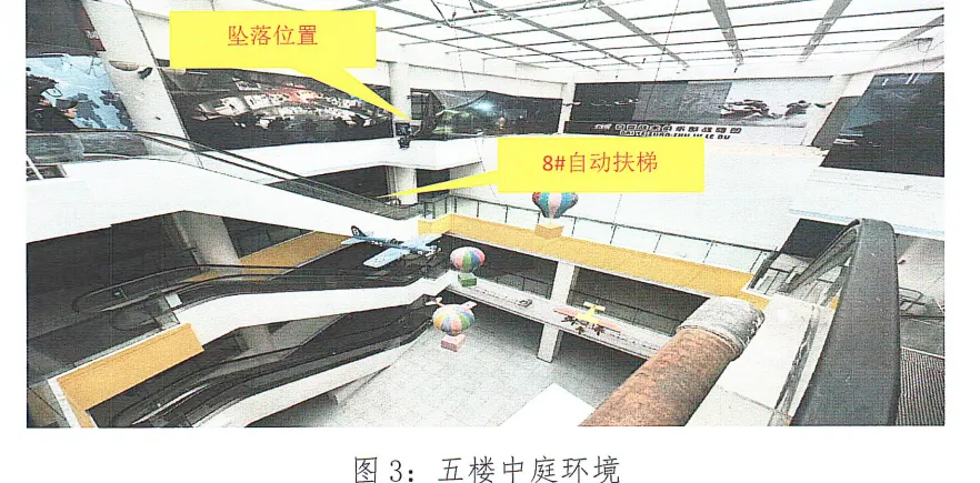 事发时,队友看见付某俊攀爬到护栏上,然后挪到一处有广告喷绘布遮挡的转角位置作为掩体。付某俊手持玩具枪往外试探是否能偷袭别人,将身体倚靠挨着上方的广告喷绘布,广告喷绘布结构由木方支撑因受力不够,其中一根木方突然断裂和广告喷绘布撕扯,付某俊因失去依靠从五楼护栏上往下跌落。付某俊在跌落过程中,砸中三楼自动扶梯的手扶带后继续跌落,最终跌落在二楼的自动扶梯侧边。