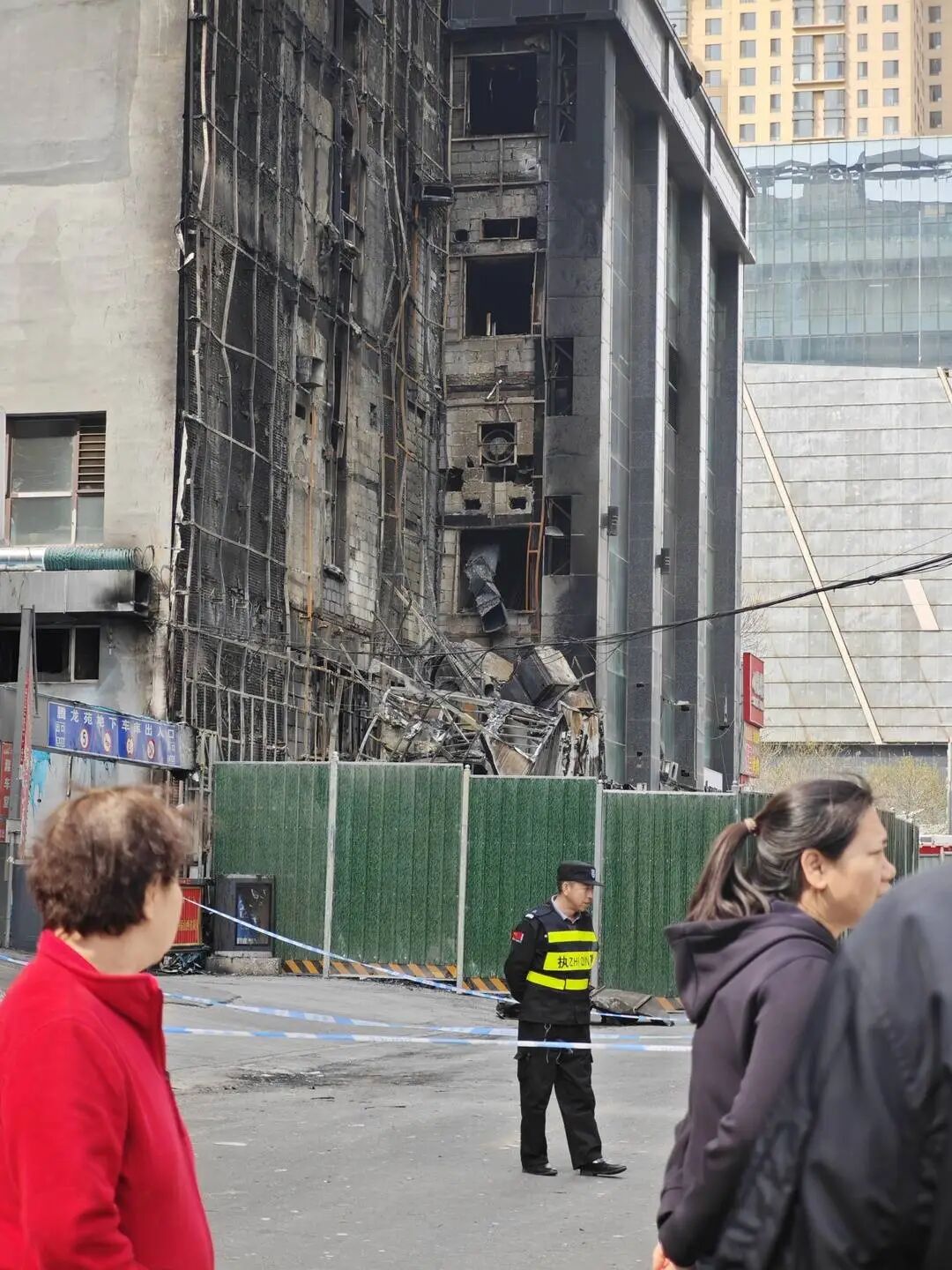 市民段先生在灭火后赶到现场,“九点十五到达,现场基本都已灭火,有警察在维持秩序。后来我通过小区进去,大概两百米左右的地方,看到消防员在排查。”他用镜头记录下消防人员进入垮塌建筑搜寻的画面,“挺危险的,让我很感触,他们都是逆行者。”