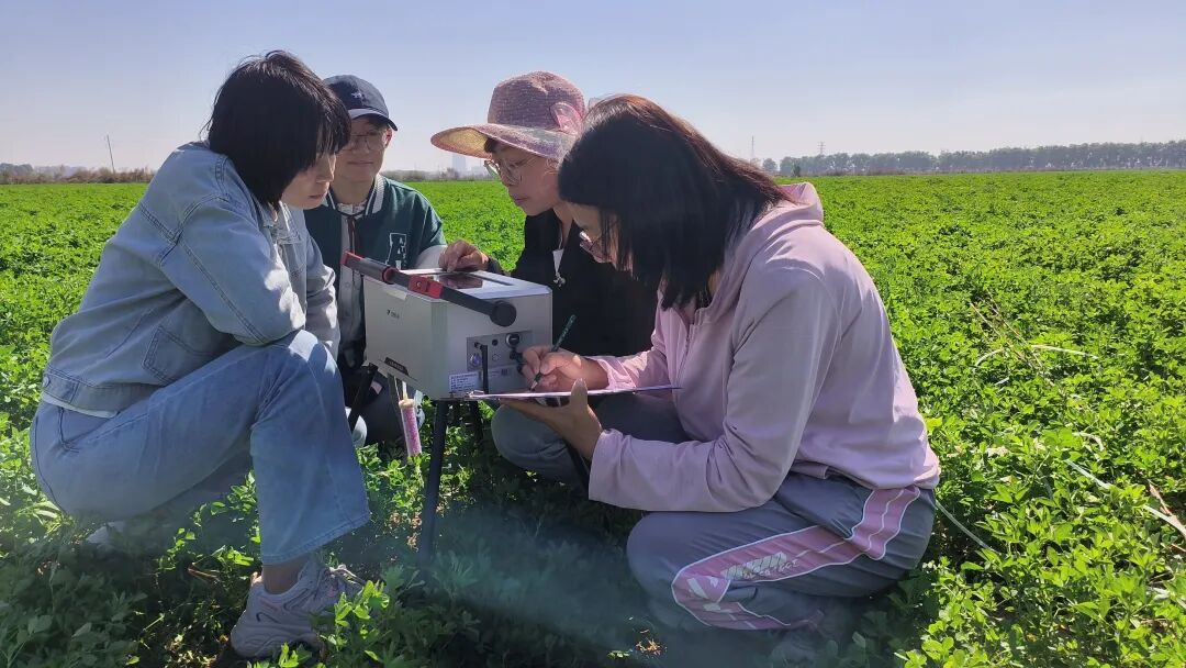 呼和浩特市气象局业务人员开展苜蓿生理特性观测。摄影:苏利军