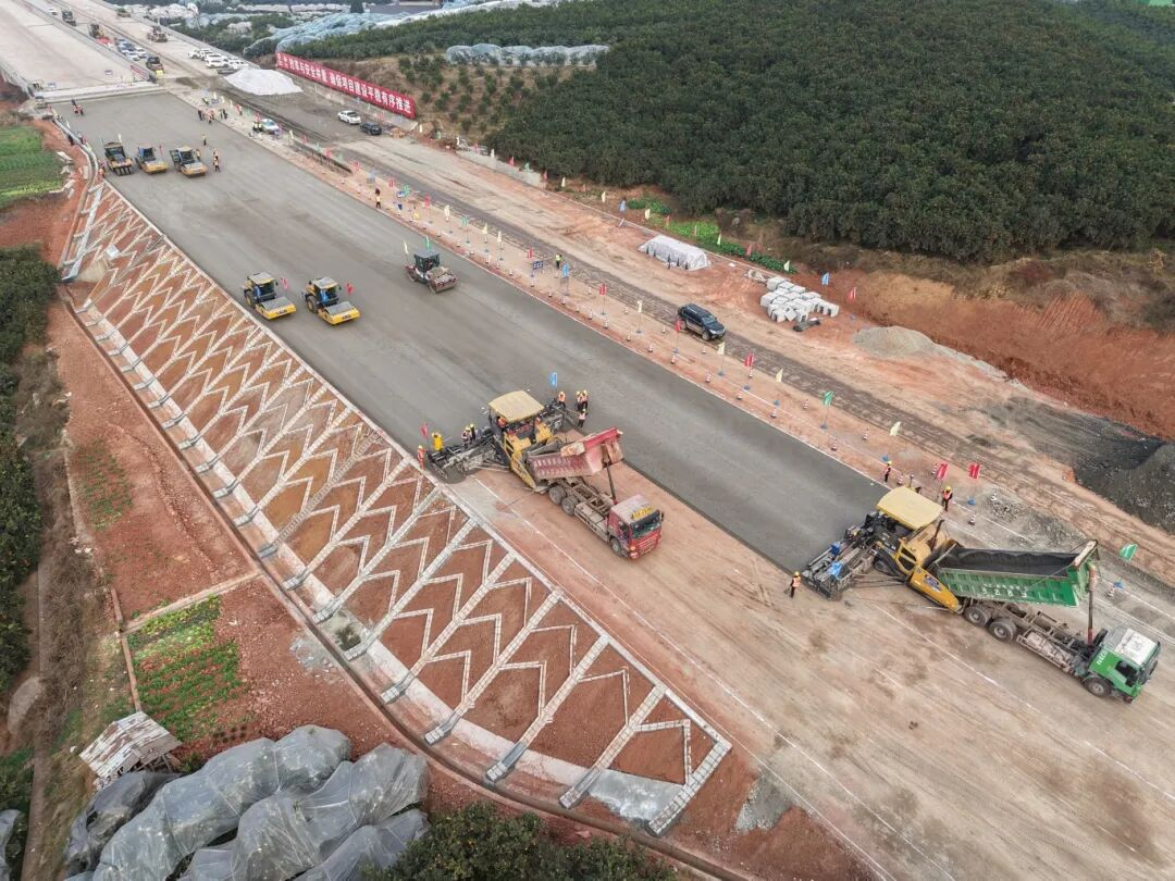 近日,在天眉乐高速公路LM3项目建设现场,随着最后一车水稳混合料摊铺碾压成型,天眉乐高速全线首段水稳基层试验段顺利完成铺筑。这一关键节点的实现,标志着天眉乐高速路面施工进入全面加速阶段。