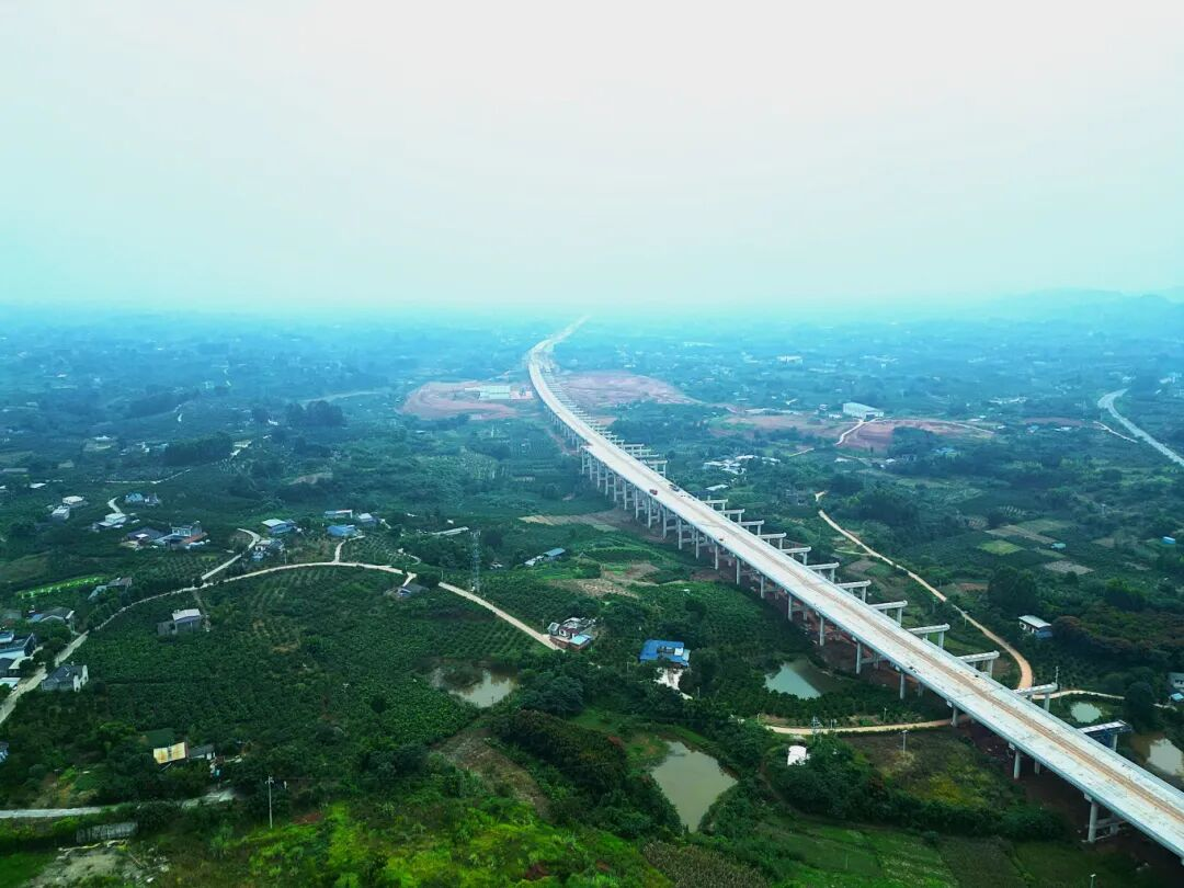 天眉乐高速TJ2标段同样如火如荼。TJ2标段有关负责人表示:“TJ2标段主线已于去年实现贯通,目前正全力推进剩余梁板架设与视高互通枢纽匝道现浇施工,预计今年6月底前可完成,全部土建主体工程。”据悉,视高互通枢纽作为天眉乐高速新区段的关键节点性工程,共设大中桥梁9座,建成后,从视高互通前往成都正兴互通仅需10分钟左右。