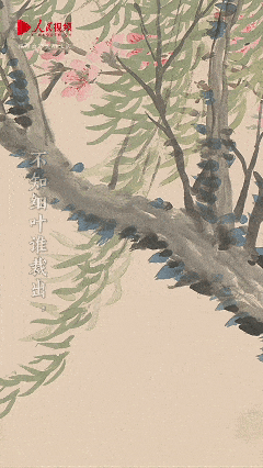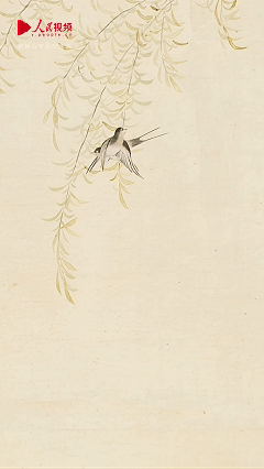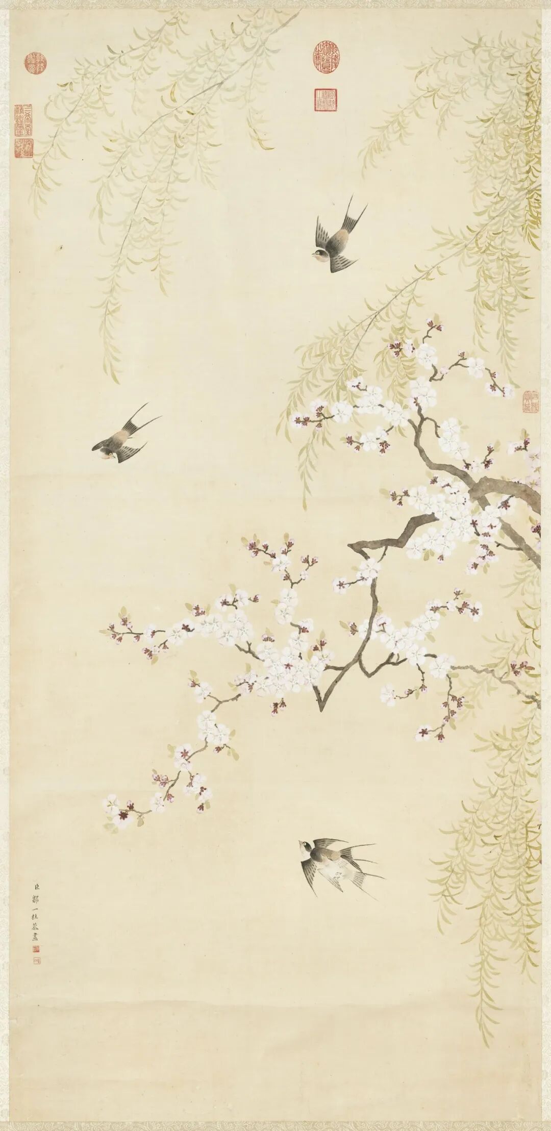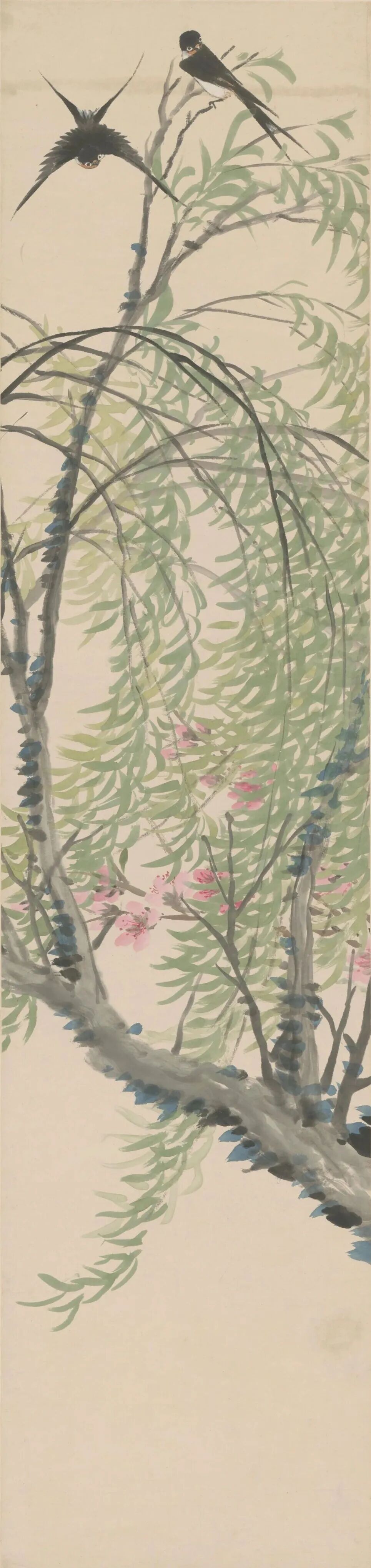 任熊的《花卉四条屏之“桃柳双燕图”》上