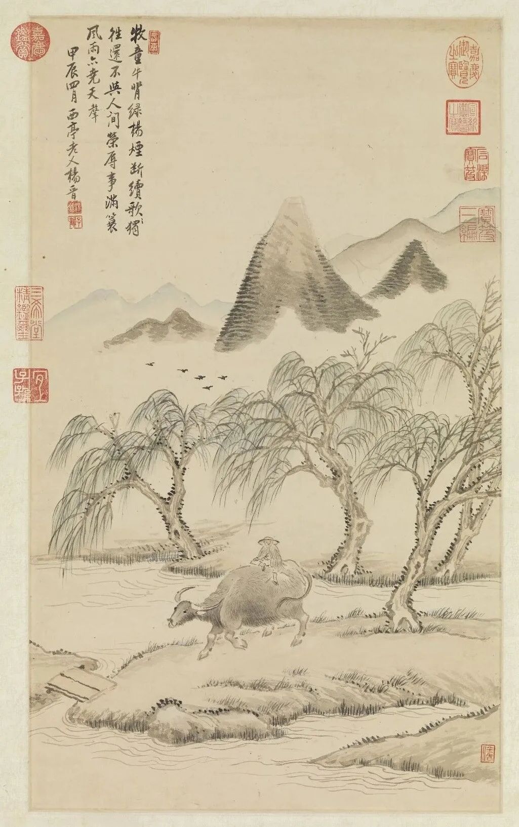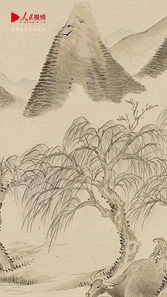 《花卉四条屏之“桃柳双燕图”》(清)任熊