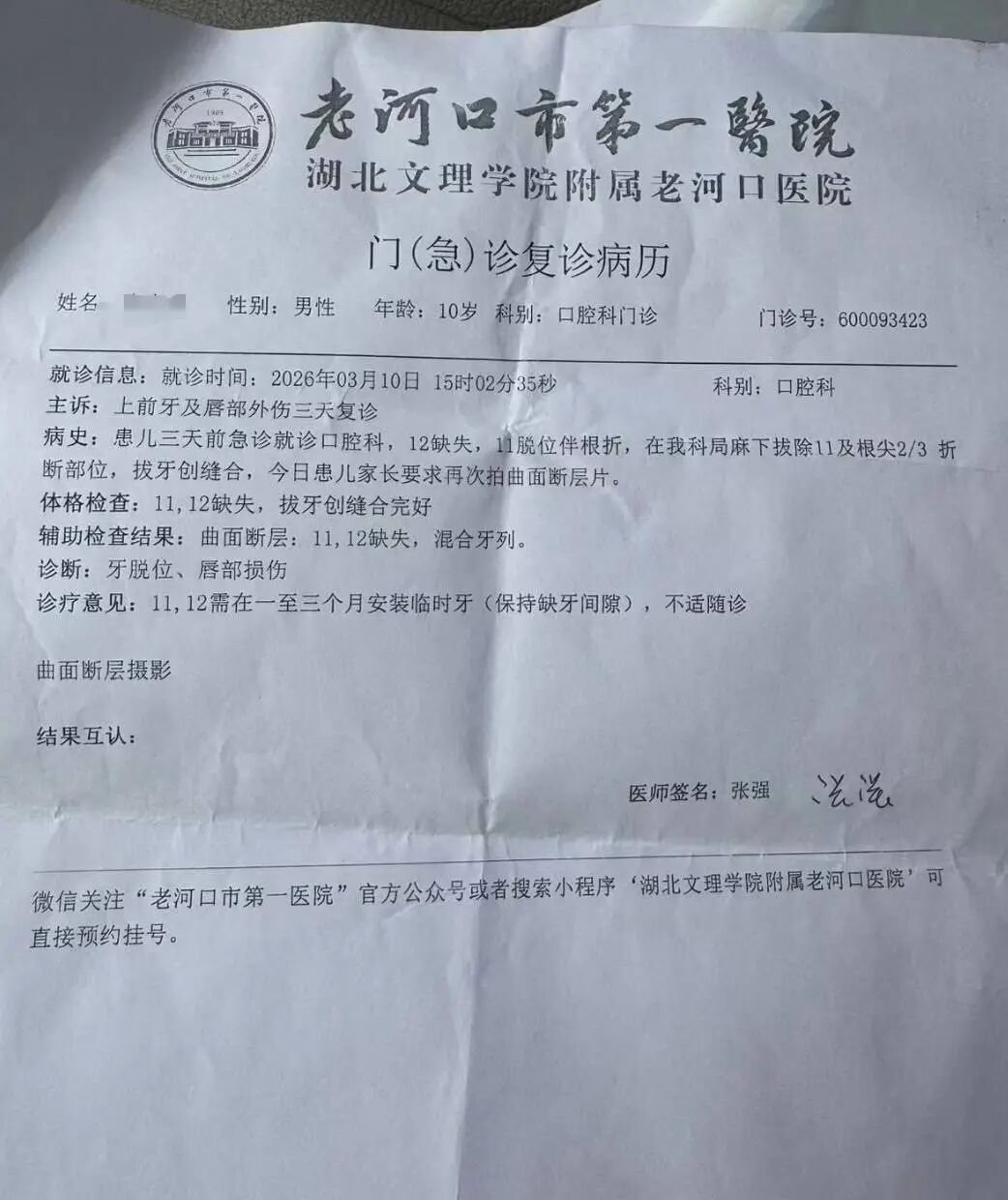 3月30日,湖北襄阳的张先生向媒体反映,他10岁的儿子去探望前妻时,被前妻同居的男友酒后打掉两颗牙齿,目前打人者已被移交检察院审查起诉。