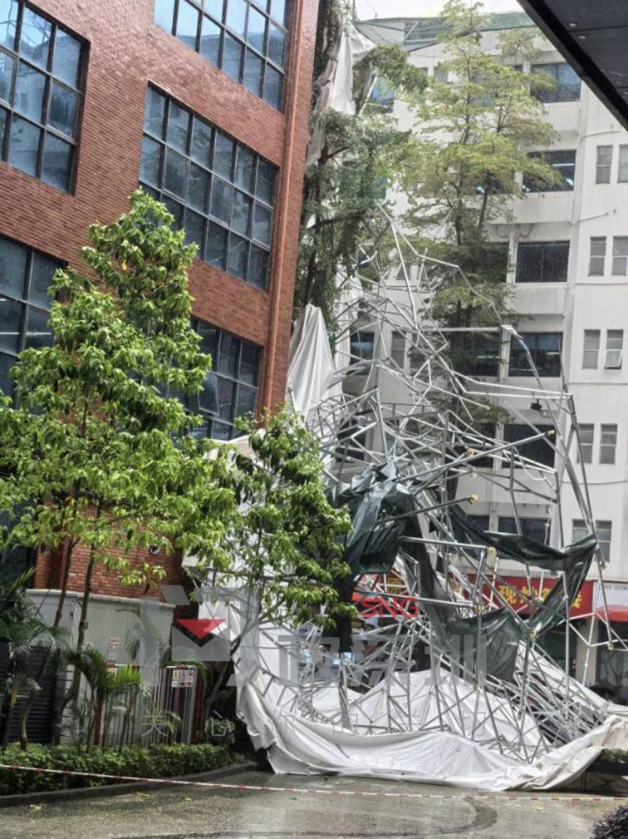 据网友反映,3月30日上午,受暴雨大风冲击,小镇内一处篮球场雨棚的钢架结构突然倒塌,金属框架连同篷布整体倾覆至地面,部分结构挤压到周边树木及低层建筑外围设施,现场未发现人员被困或伤亡情况。