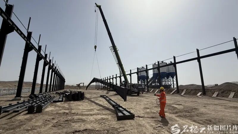 3月29日下午,独库高速公路项目主线先导工程土建施工6标作业现场,吊车稳稳吊起一榀钢梁,在施工人员指挥下,稳稳落在钢结构底座上。一旁的拌合站内,搅拌楼已安装到位,施工人员在底部做进一步的检查。
