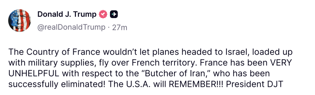 特朗普社交媒体账号发文截图