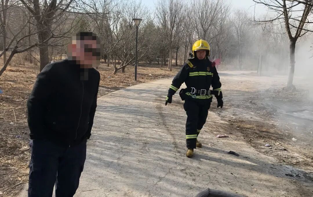 在火情被彻底处置完毕前,该报警人骑车离开了现场。消防救援人员归队后,立即就此事向公安机关报警。