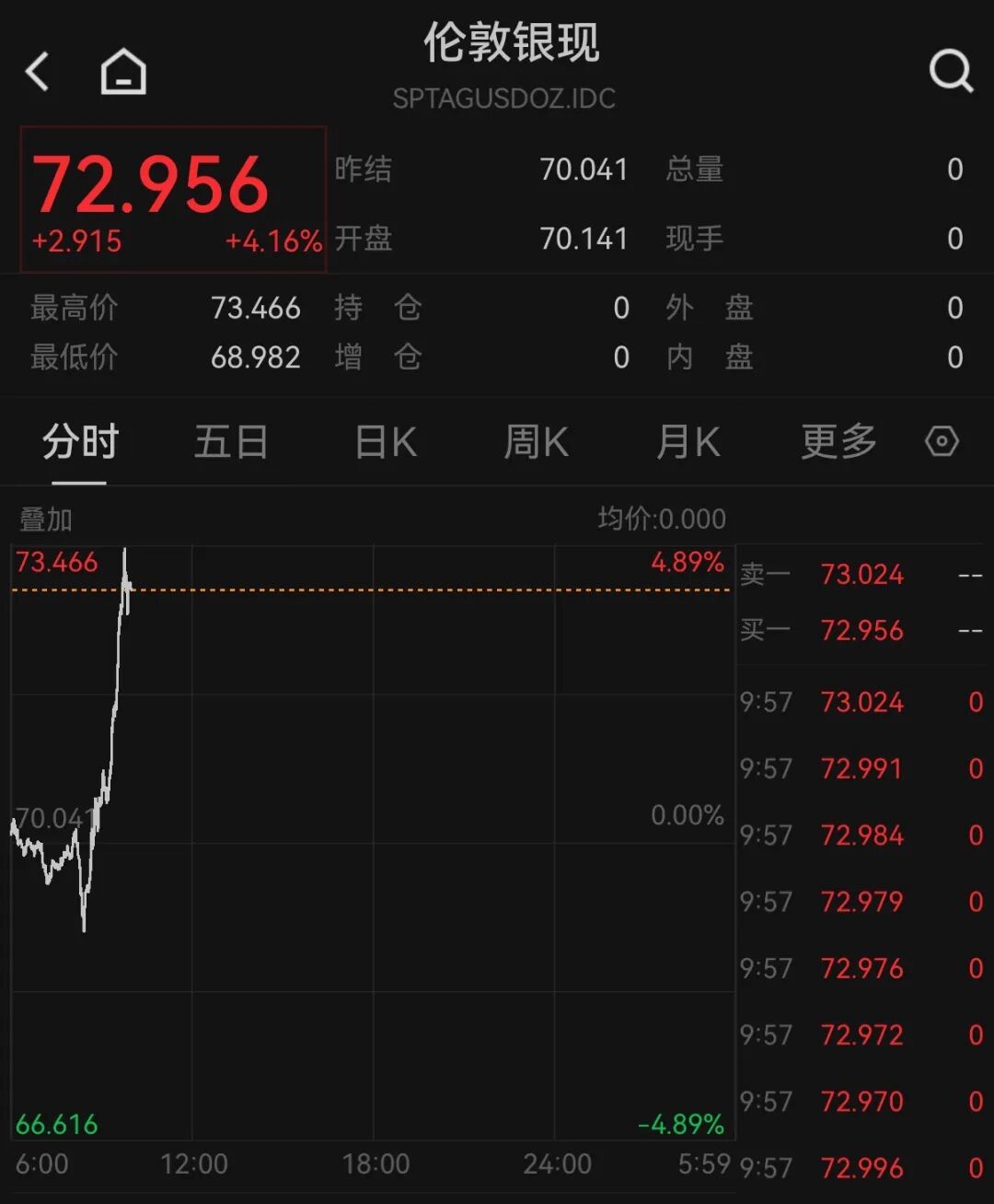 消息面上,现货黄金站上4600美元/盎司,日内涨2.07%。现货白银大涨超4%,报72.956美元/盎司。