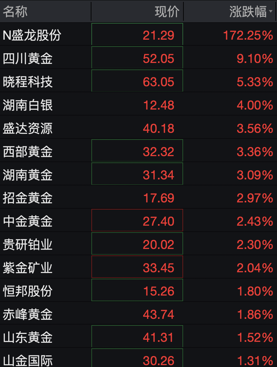 3月31日盘中,贵金属概念快速拉升,多只黄金股领涨,四川黄金触及涨停,晓程科技涨超5%,湖南白银、盛达资源、西部黄金、湖南黄金、招金黄金等跟涨。