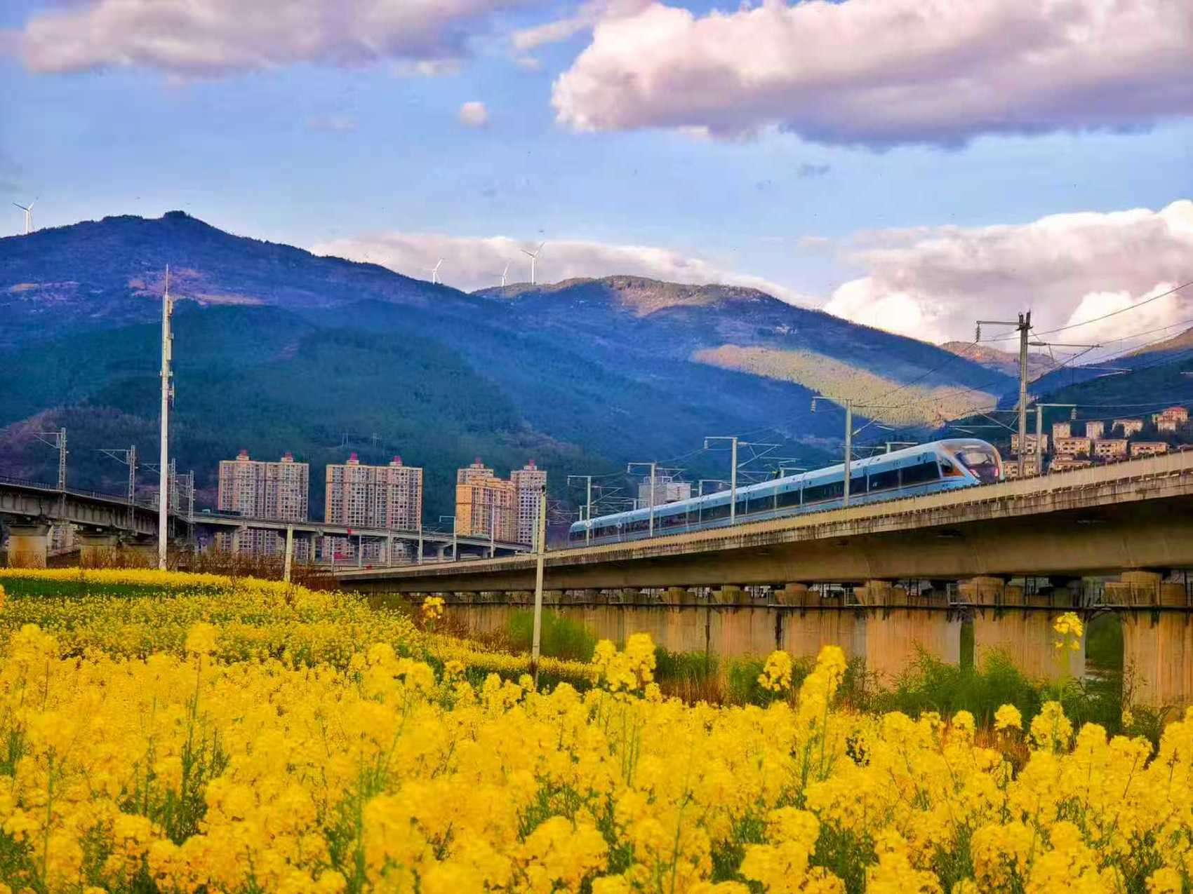 春游假期期间,西南高铁沿线春光正好,依托高铁1—3小时交通圈线路,高铁成为西南地区旅客春日出行首选,实现“说走就走,景在眼前”的便捷旅途。春游假期,成渝间日均开行列车220列,成雅铁路日均开行列车111列,成贵高铁日均开行列车75列,14列川渝黔环线列车带你“转个圈圈”去踏青,极大方便了短途旅客出游。