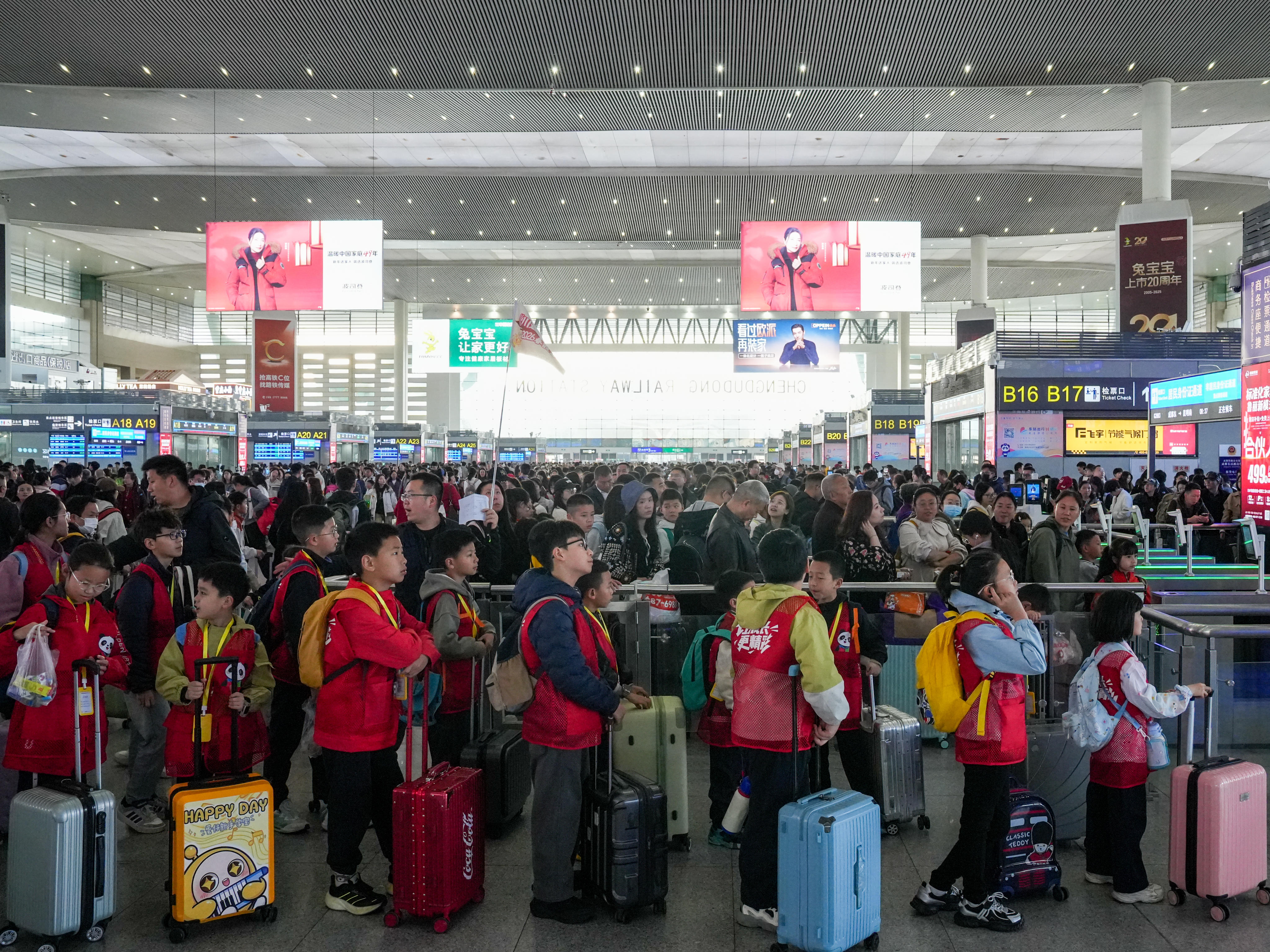 同时,国铁成都局针对假期出游客流增长,研学专列担当车站针对研学团队数多、行李多的特点制定专项方案,开辟“专属候车区”与“绿色通道”,安排专人全程引导,实施分批核验、优先进站,担当列车开展趣味安全小课堂,强化学生旅客出行安全提示,用通俗易懂的语言讲解高铁安全常识。针对假期儿童旅客出行较多,管内车站增配志愿者引导旅客进出站,各趟次列车针对儿童旅客出行用漫画手册、趣味问答的形式,向孩子们普及铁路安全、文明乘车等知识,多趟列车丰富餐品供应,增加儿童套餐。