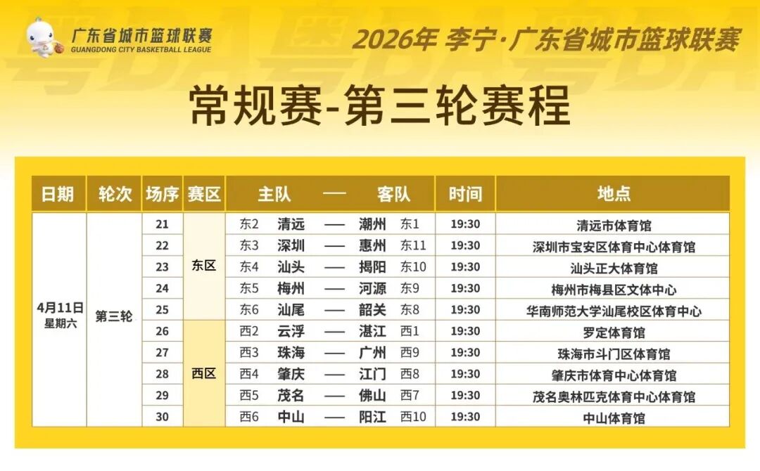 据赛事方3月30日消息,为切实保障运动员日常生活,尊重公序良俗,清明节期间不进行比赛。短暂休整后,粤BA常规赛第三轮于4月11日热血回归。