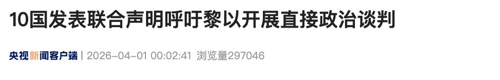 当地时间3月31日,比利时、克罗地亚、塞浦路斯、法国、希腊、意大利、马耳他、荷兰、葡萄牙和英国以及欧盟发表联合声明,呼吁黎巴嫩与以色列开展直接政治谈判,以推动结束当前冲突。
