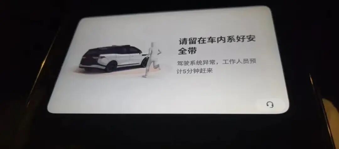 一位遭遇萝卜快跑故障的武汉居民告诉红星新闻记者,其在21点左右上车,“刚起步就有点卡,但行驶路线是对的,拐了个弯就直接不动了,屏幕就显示‘请留在车内系好安全带,驾驶系统异常,工作人员预计5分钟赶来’,等了10分钟,还是没反应。”