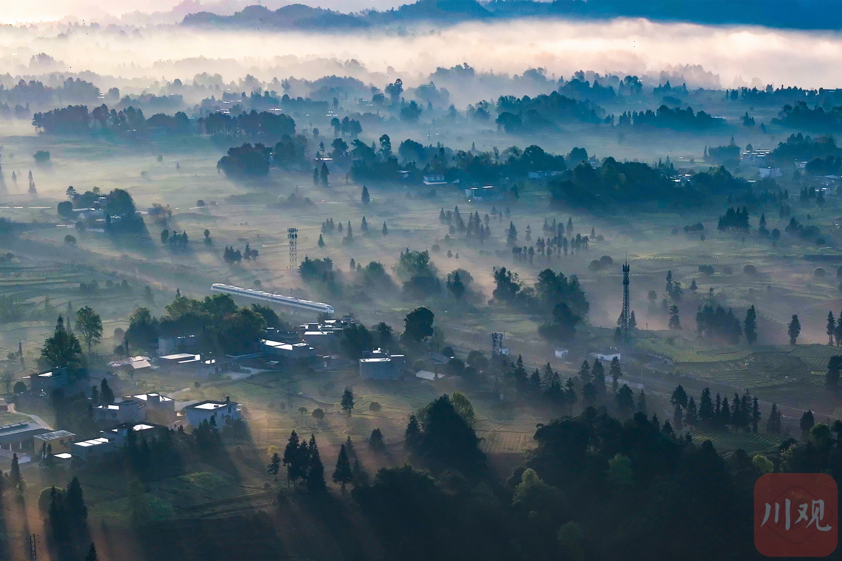 动车穿过雅安名山茶田,构成酷似“千里江山图”的场面