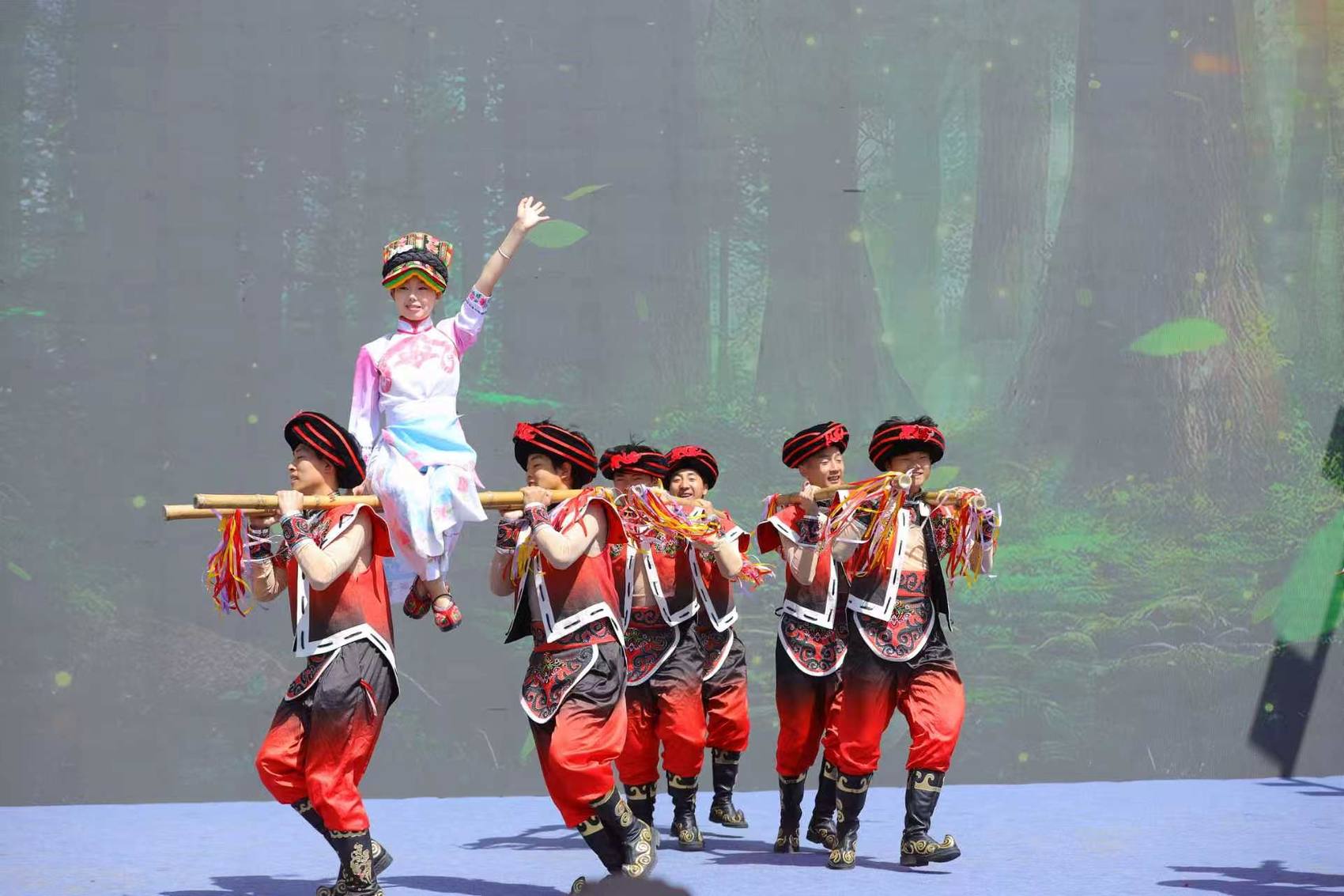 现场上演羌族舞蹈