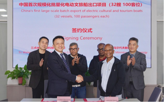 近日,三点水新能源科技有限公司(简称“三点水新能源”)与马尔代夫交通运输部、新能源部在安徽芜湖正式签署战略合作协议,签订32艘100客位电动文旅船出口订单。