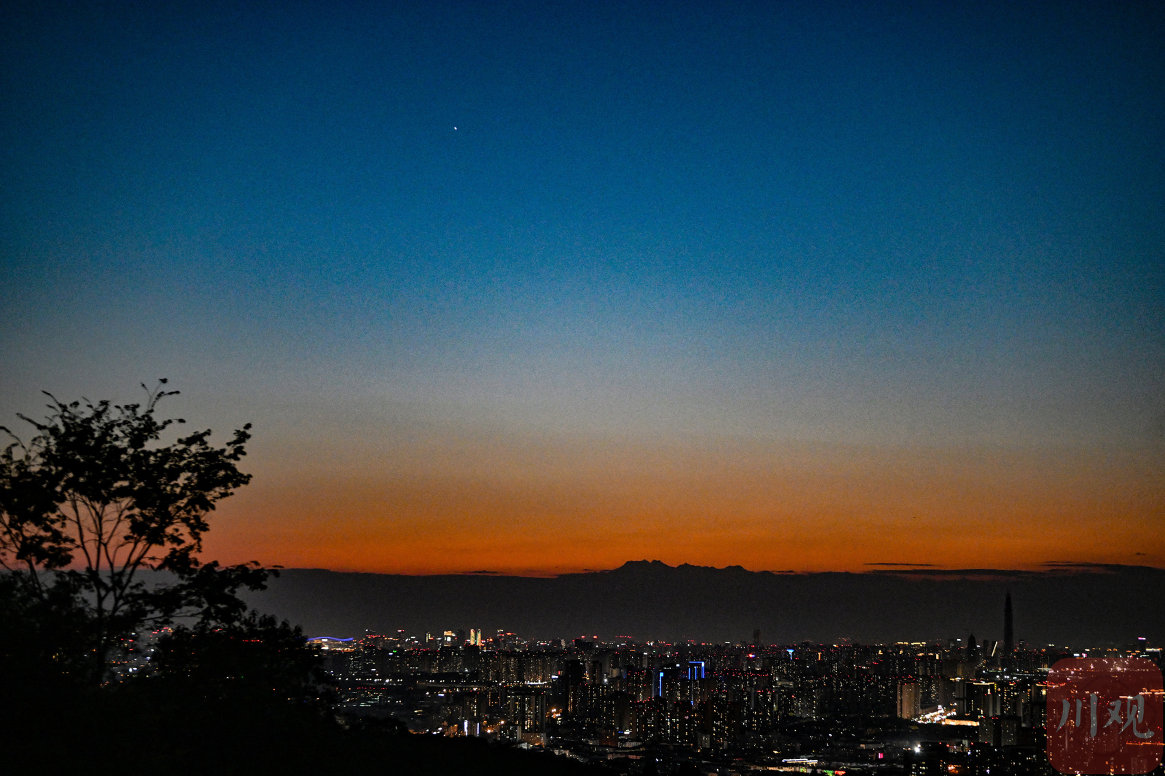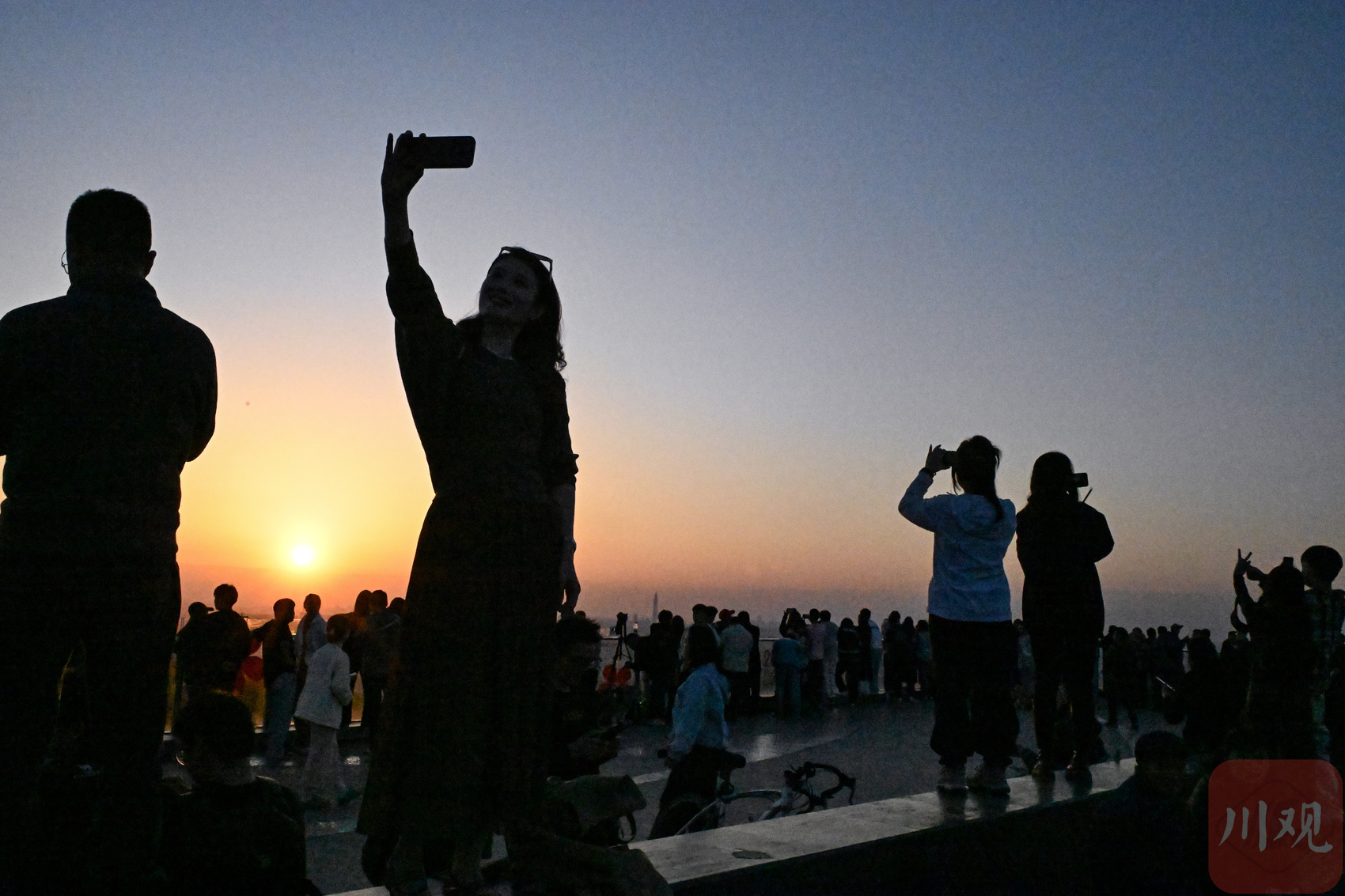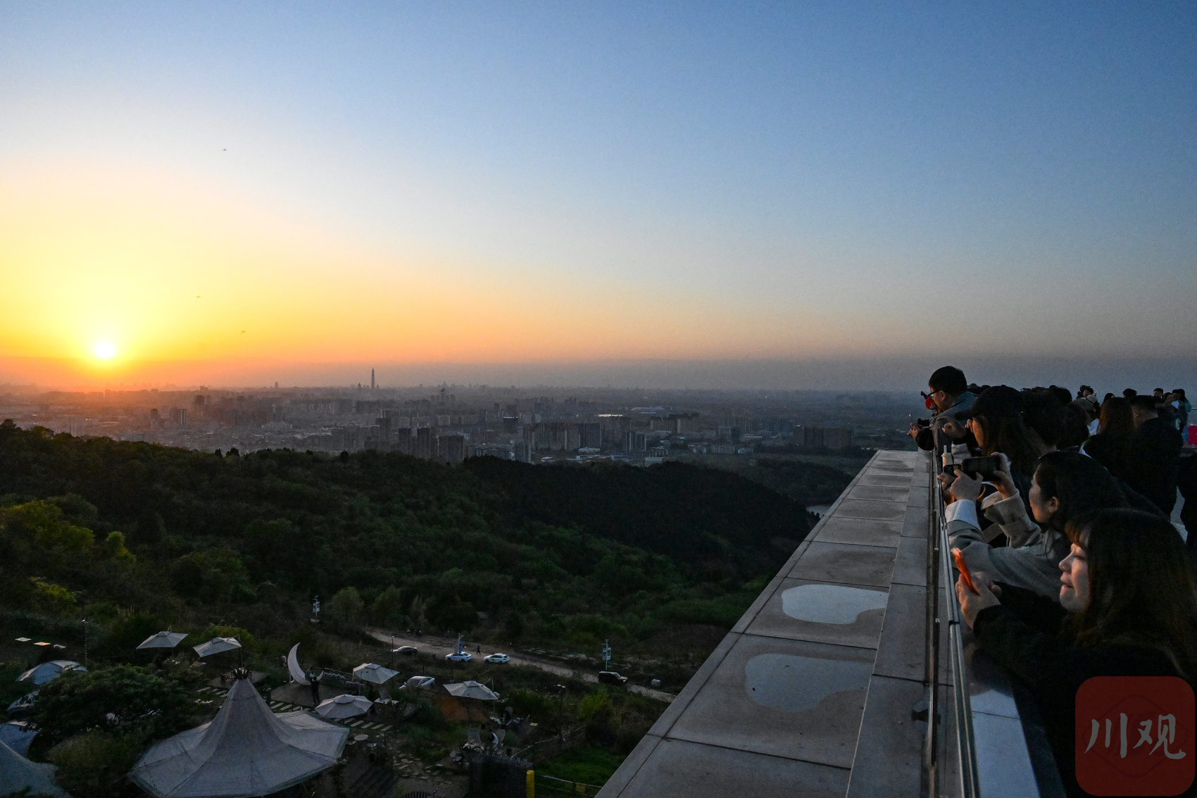 2026年3月31日傍晚,在位于成都市龙泉驿区的龙泉山顶,晚霞中的成都市区尽收眼底,市民和游客登高远眺,日落、晚霞、星空、圆月、桃花、高楼、山脉…… 当这一系列标志着城市生态美的名词同时汇聚成一张照片时,让人感觉诗和远方并不遥远。