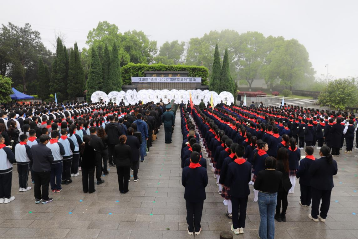 苍松翠柏掩映,烈士丰碑巍然。全体人员在烈士碑前整齐列队,静静肃立,向为中国革命和建设各个历史时期英勇就义、以身殉国、舍己为人的英烈们鞠躬、默哀,以最庄重的礼仪表达对革命烈士的深切悼念和无尽哀思。区关工委副主任杜长志讲述革命英烈故事,团区委书记熊承宇带领宣誓,江津中学学生代表以青春之声抒发继承遗志、勇担使命的坚定决心。