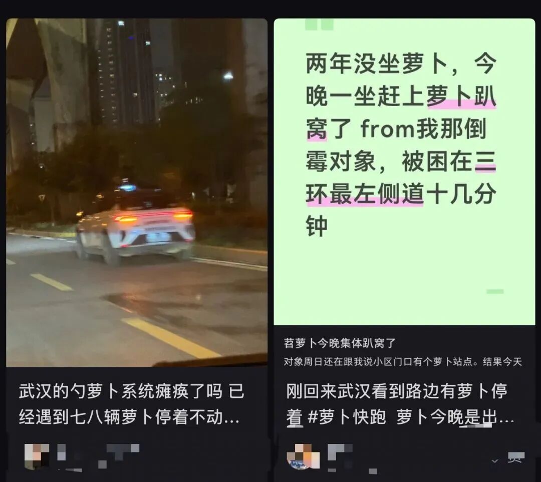 3月31日21时许,多名IP地址为湖北的网友发帖称,武汉萝卜快跑集体瘫痪,有多名乘客称被困在高架上或主干道上。同日晚,萝卜快跑客服称,车辆驾驶系统异常是网络原因导致。