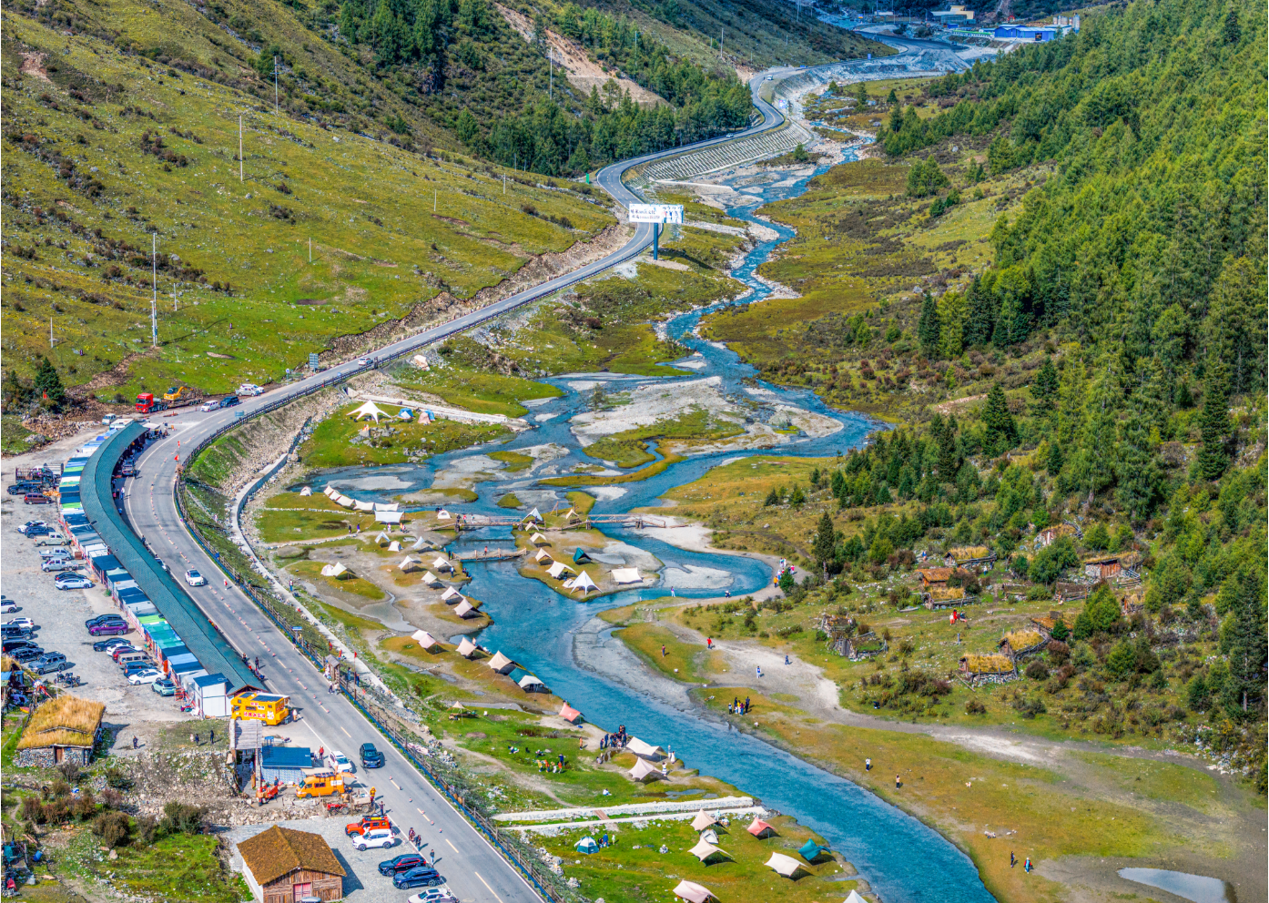 在川西高原的群山之间,有一条34公里的生态画廊——小金县双桥沟旅游路。它起于双桥沟沟口,止于红杉林景点,是连接景区核心资源与周边村落的重要通道。春天驶入双桥沟,公路两侧的野花次第绽放,雪山融水汇成潺潺溪流,草甸渐绿,牦牛悠然。公路与“东方阿尔卑斯”景观带深度融合,雪山、森林、海子、草甸次第展开,四季呈现“春有百花、夏有凉荫、秋有彩林、冬有冰雪”的独特景致,真正实现“路在景中、景随路延”。
