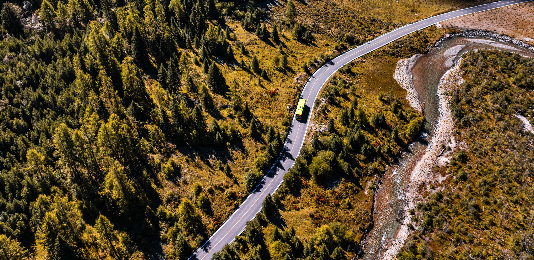 理亚路连接理塘县城与稻城亚丁,是318国道以南最早出圈的一条网红路。一路上雪山、草甸、彩林等自然风光次第展开。夕阳西下时,阳光洒在雪山、草原和海子上,整条公路仿佛通往天堂。