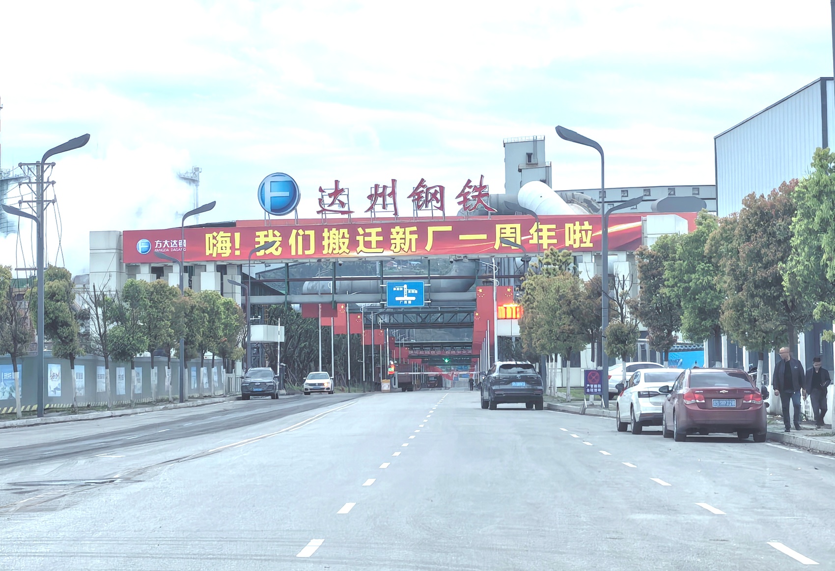 3月31日下午,达州东部经开区麻柳镇,方大达钢西门挂起了一条横幅,上面写着“嗨!我们搬迁新厂一周年啦”。