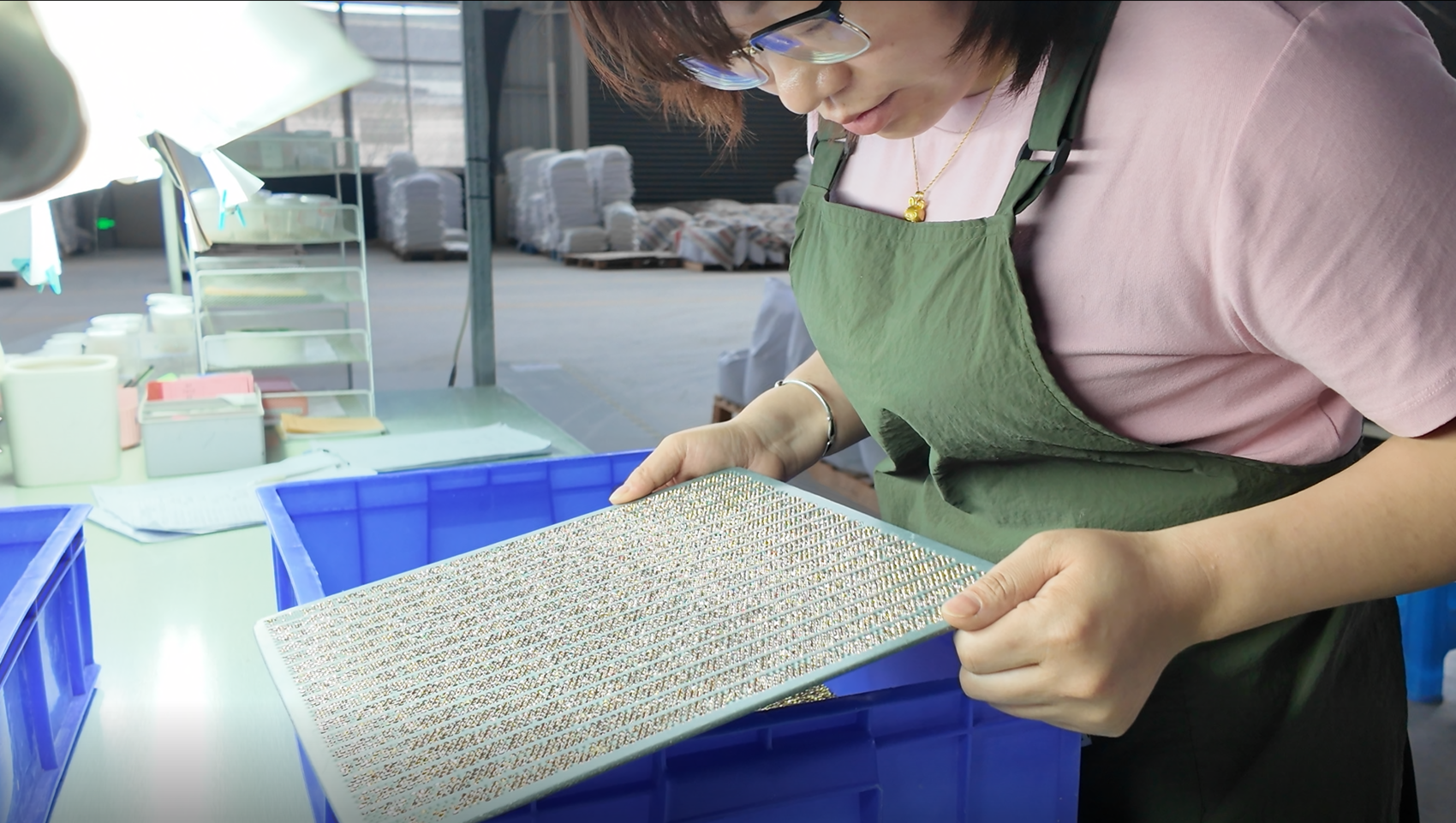 四川锐晶饰品科技有限公司的工作人员筛选水钻,保证每一颗出厂水钻都是高质量。杨鸿波 摄