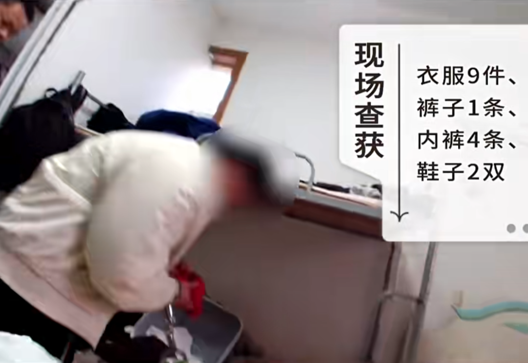 警方很快根据监控将嫌疑人抓获,在嫌疑人住处查获盗窃所得的衣服9件,裤子1条,内裤4条,鞋子2双。